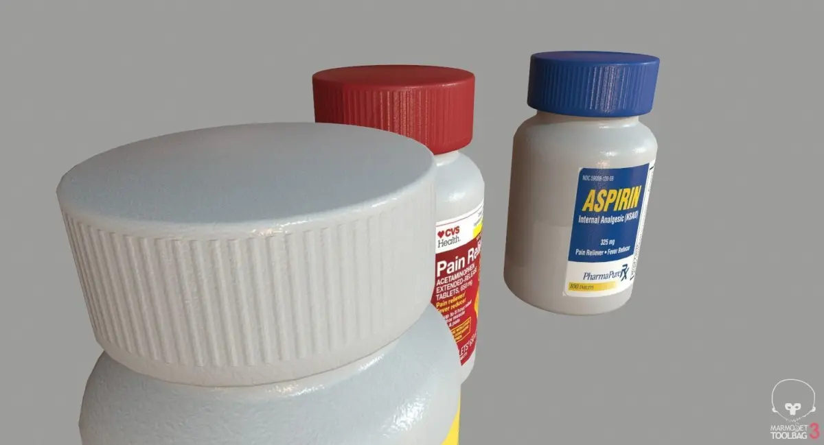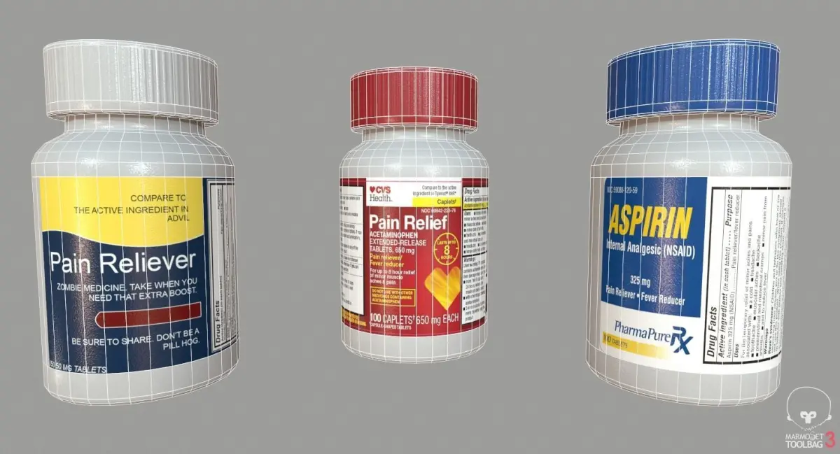 The Model of the Pain-reliever aspirin box . This is a high quality, low poly asset originally modeled in Blender 2.79. The normal map was baked from a high poly model, making this product look very detailed without using many polygons.