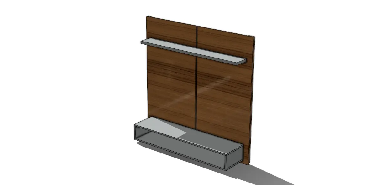 Painel, modelo Théo, dimensões 1200 x 1200mm, marca DJ Móveis, usado no interior da casa para fixar a TV e guardar coisas. Modelo feito em tamanho pequeno para ser armazenado na memória do computador. Feito em SoliWorks, extensões para usar em qualquer software 3D (.IGES, x_t, .STEP, .PRT and .STL) você pode imprimir seu modelo 3D também (.STL), e tem o PDF 3D para apresentação.