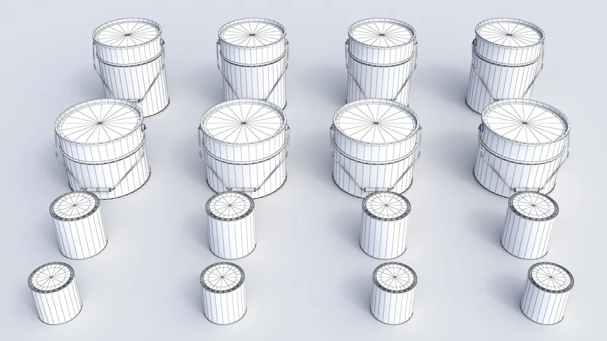 Geometry: Each asset is named, centered in 0,0 coordinates and in real size. At the same time, the assets are made with clean mesh and only with quads.The paint cans are low poly with an average between 1688 and 528 polys depends on the model, optimized to obtain a realistic appearance.Each asset is unwrapped no overlapping.