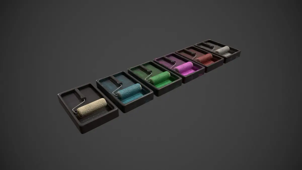 Origin for the tray is set to asset base and centre of the world. Origin for the Paint Roller is set to the centre of the roller handle, and centre of the world.