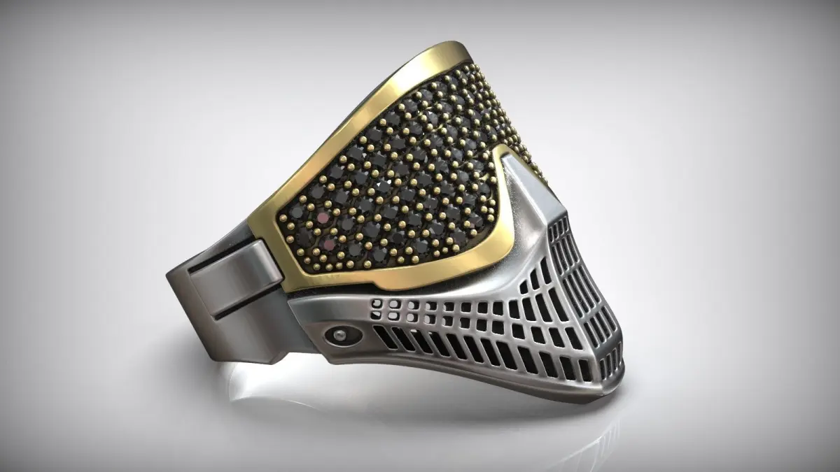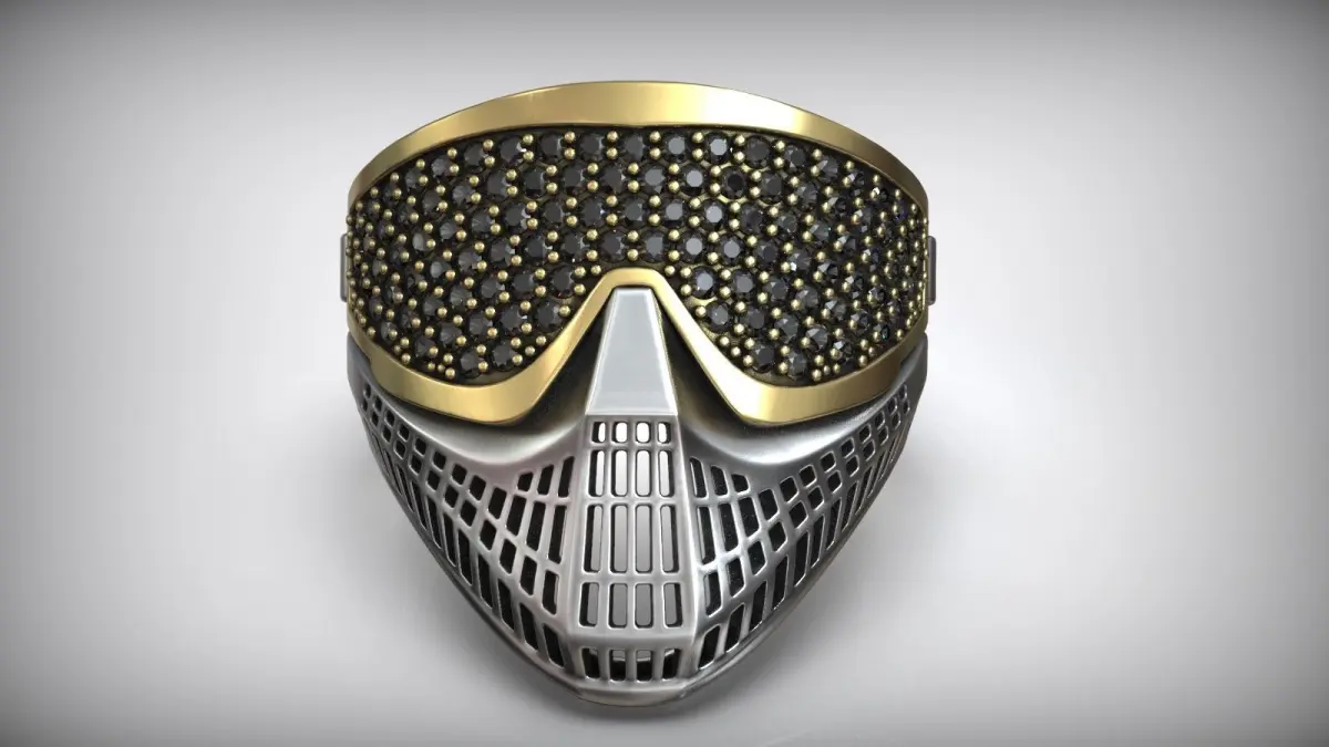 Paintball Mask Gems Glasses Blackened Silver Ring