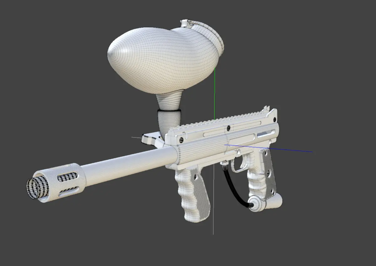 This is a 3d model of a paintball gun.I included all the files used to create this model. Starting from the blender files with booleans up to the final Modo file.I exported the mesh to several file formats.No textures are included, but all objects are UV-mapped, so you can use your own textures.