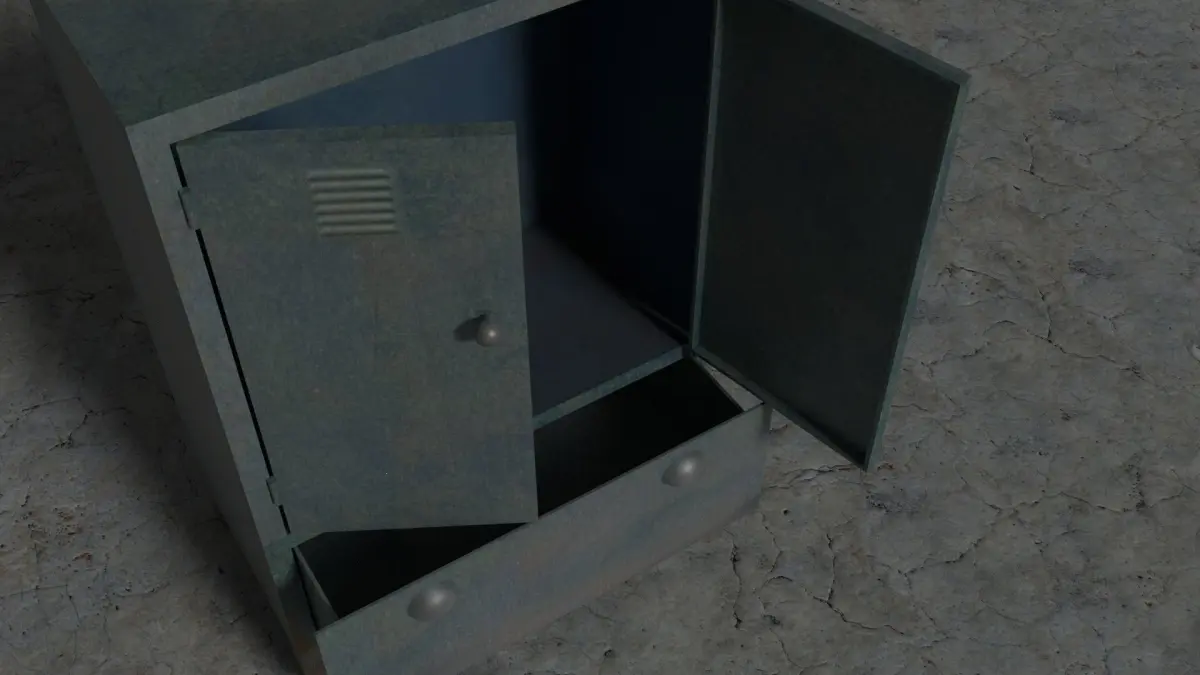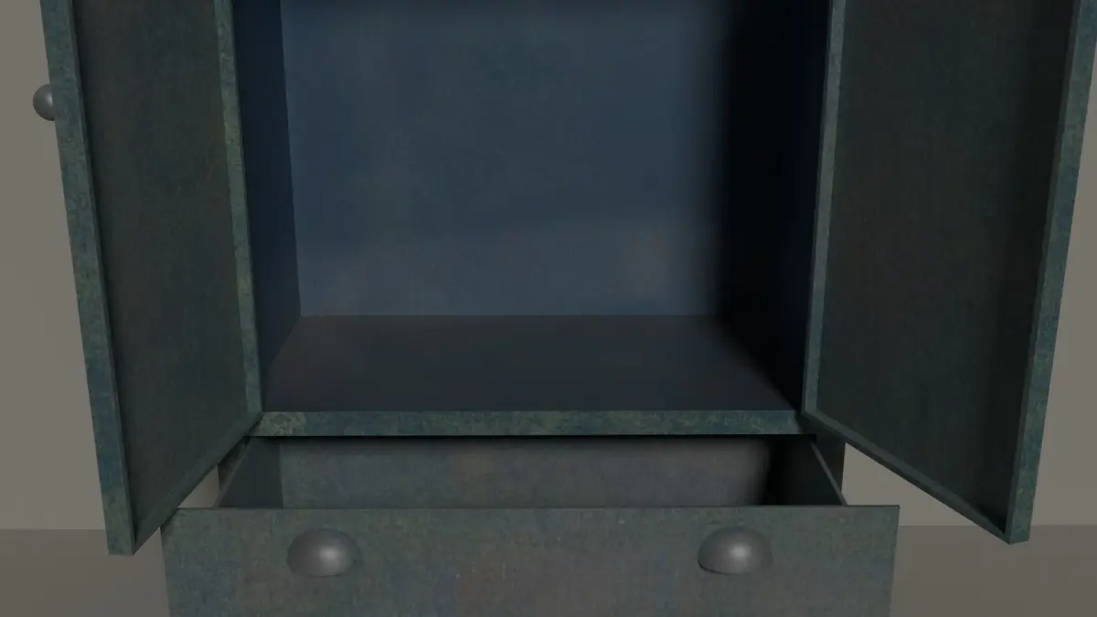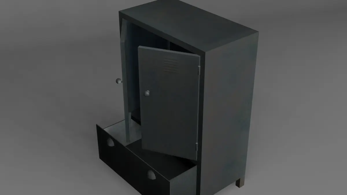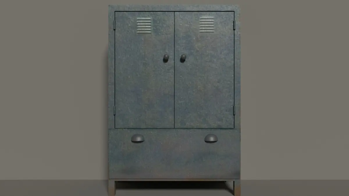 An old and tarnished tall metal cupboardcreated Blender Version 2.79Old Cupboard Low-polyUnit presets - metric.Geometry: Polygonal Quads