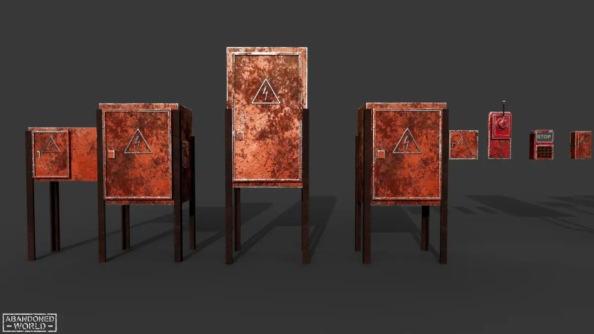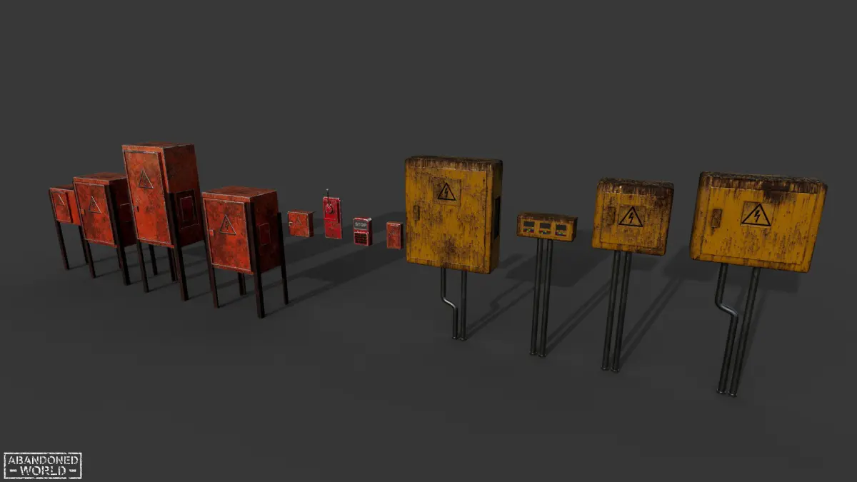 3D Models Painted Rusty Electrical Panels made in low poly. These models are well suited for the layout of industrial scenes or utility rooms with electric panels. Perfect for the Unreal Engine and Unity.