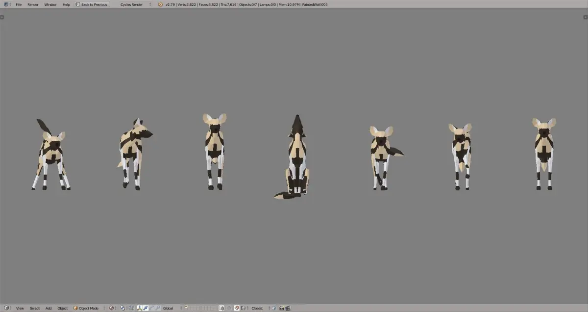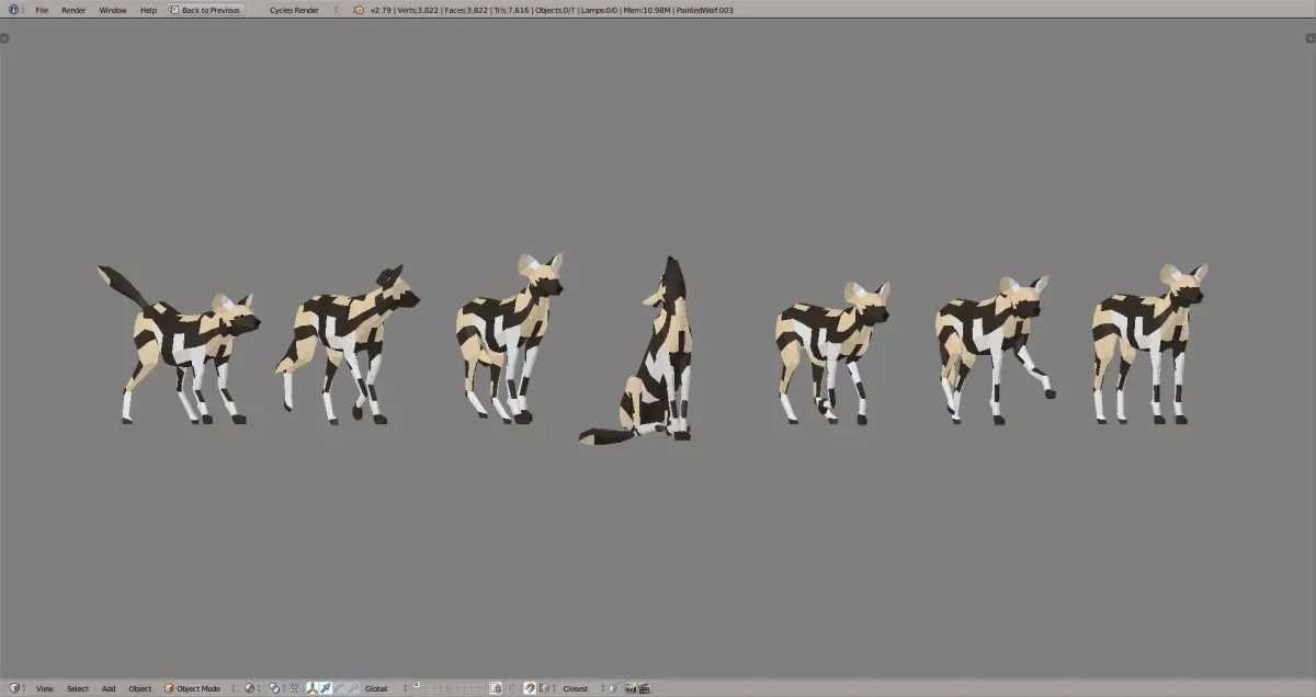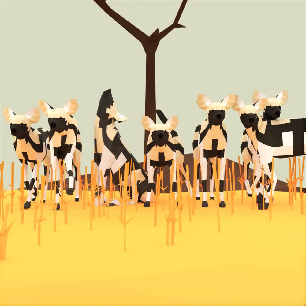 Home Catalog Animals Mammal (cghub) Mammal Painted Wolves Low-poly 3D model