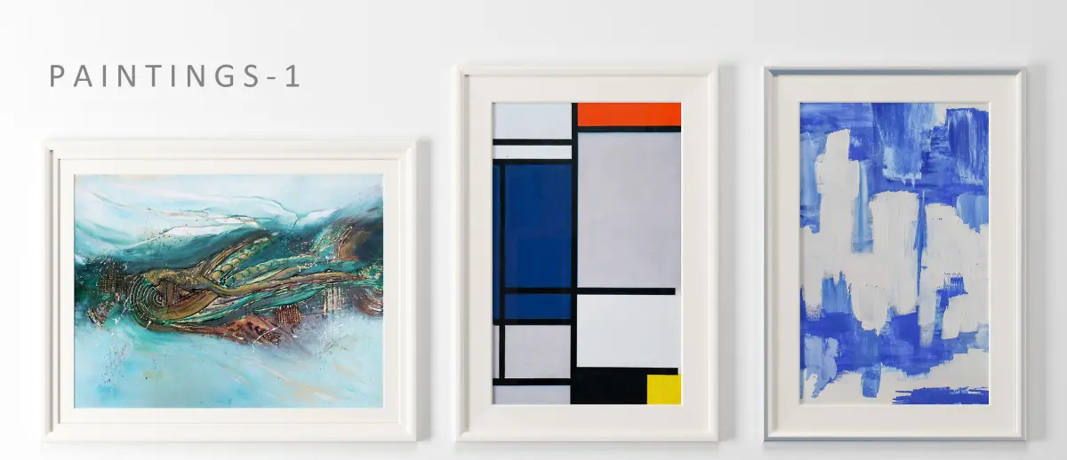 Painting frames 3 contains different abstract paintings in blue and white color combinations.. suits best your interiors and give an elegant look for your interiors...designed in 3dsmax