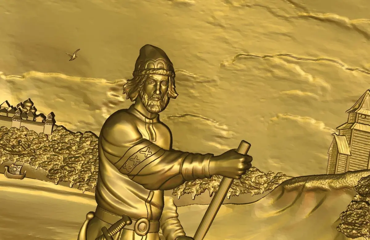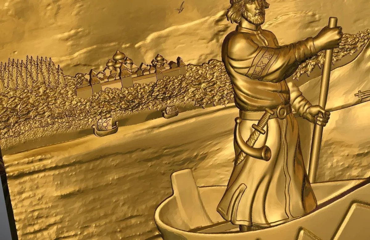 HomeCatalogPainting gold medallion with man in boat 3D print model