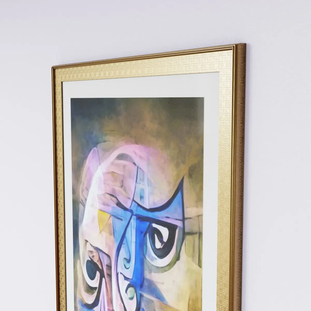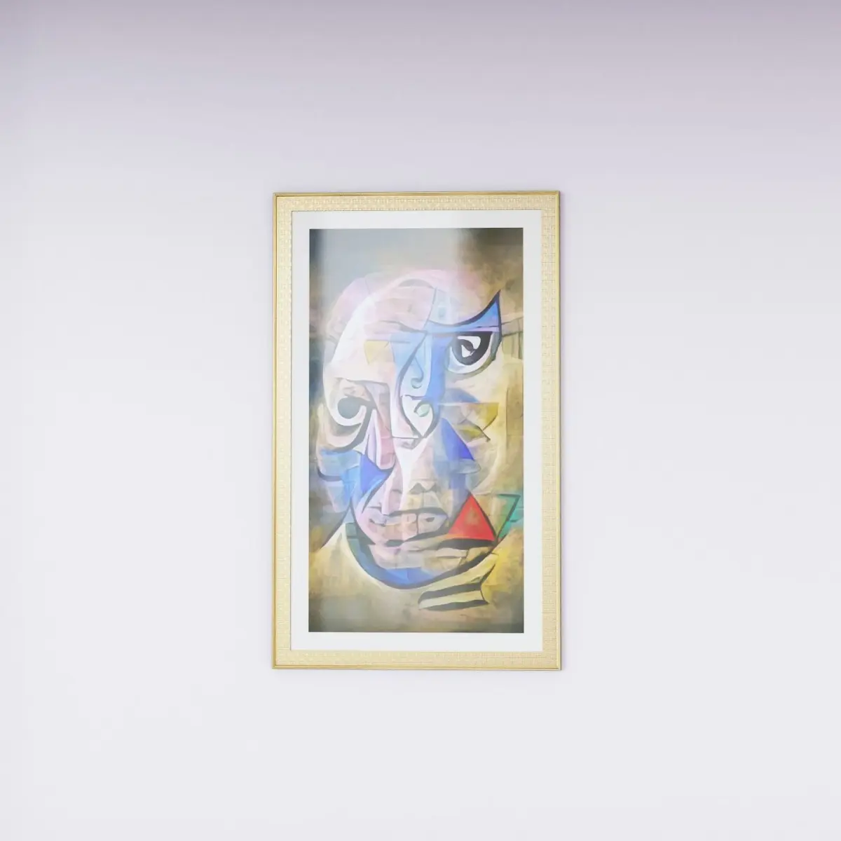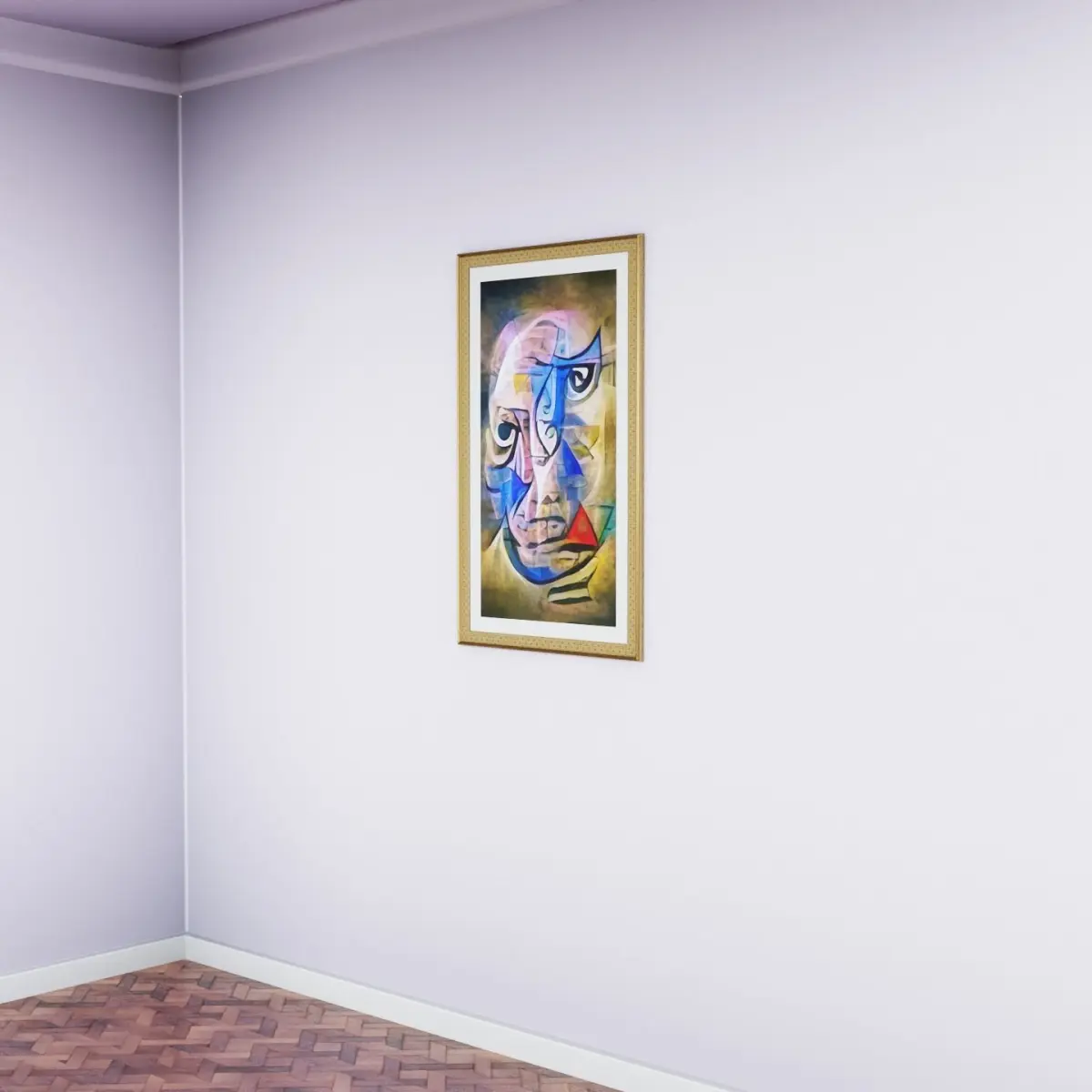 - Totally original artwork in the style of Picasso. 3D frame with glass panel for added realism. Ideal for interior design or architecture visualization scenes.