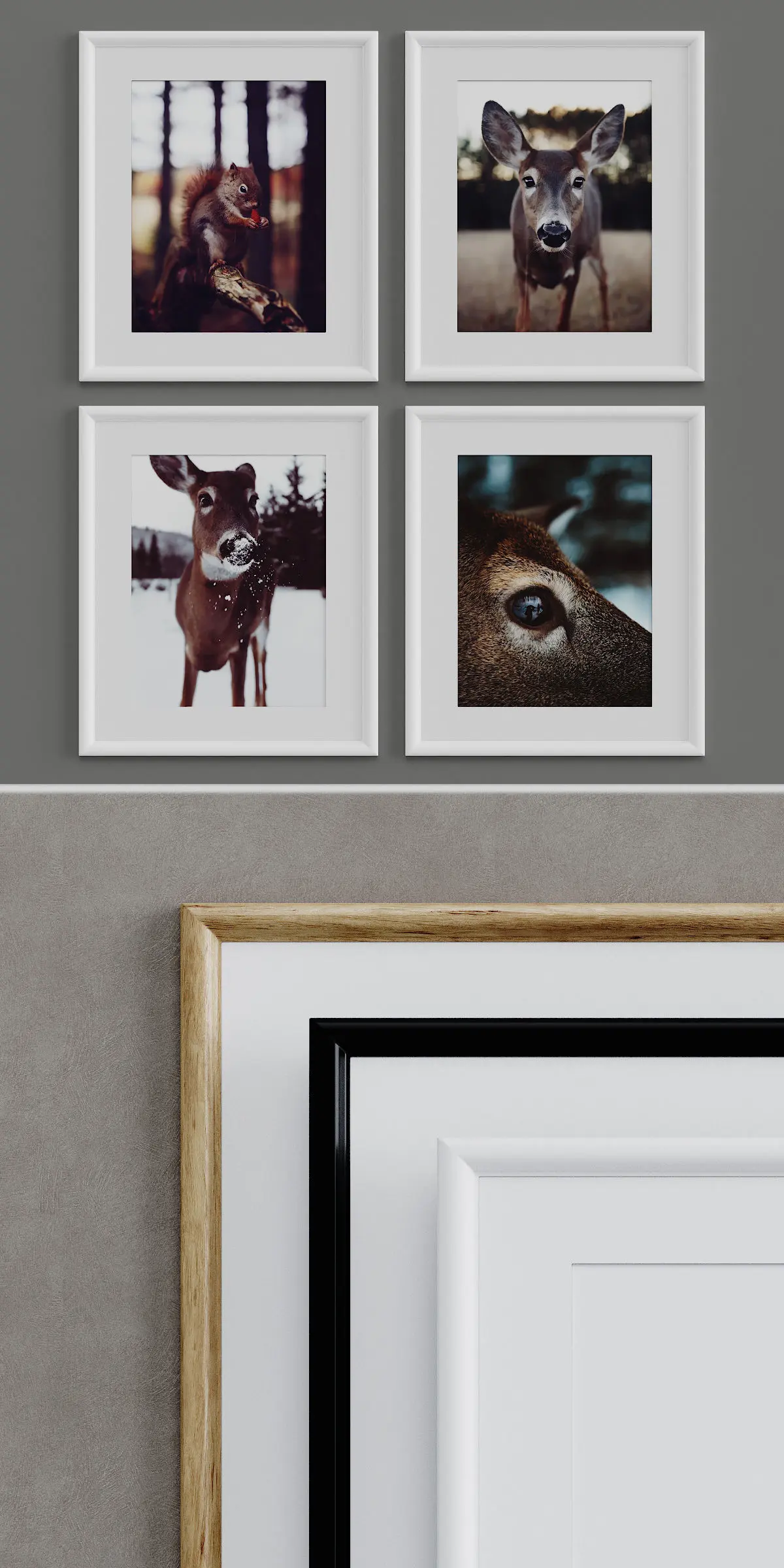 In the model there are 3 types of material for the design of frames Black, white and wood