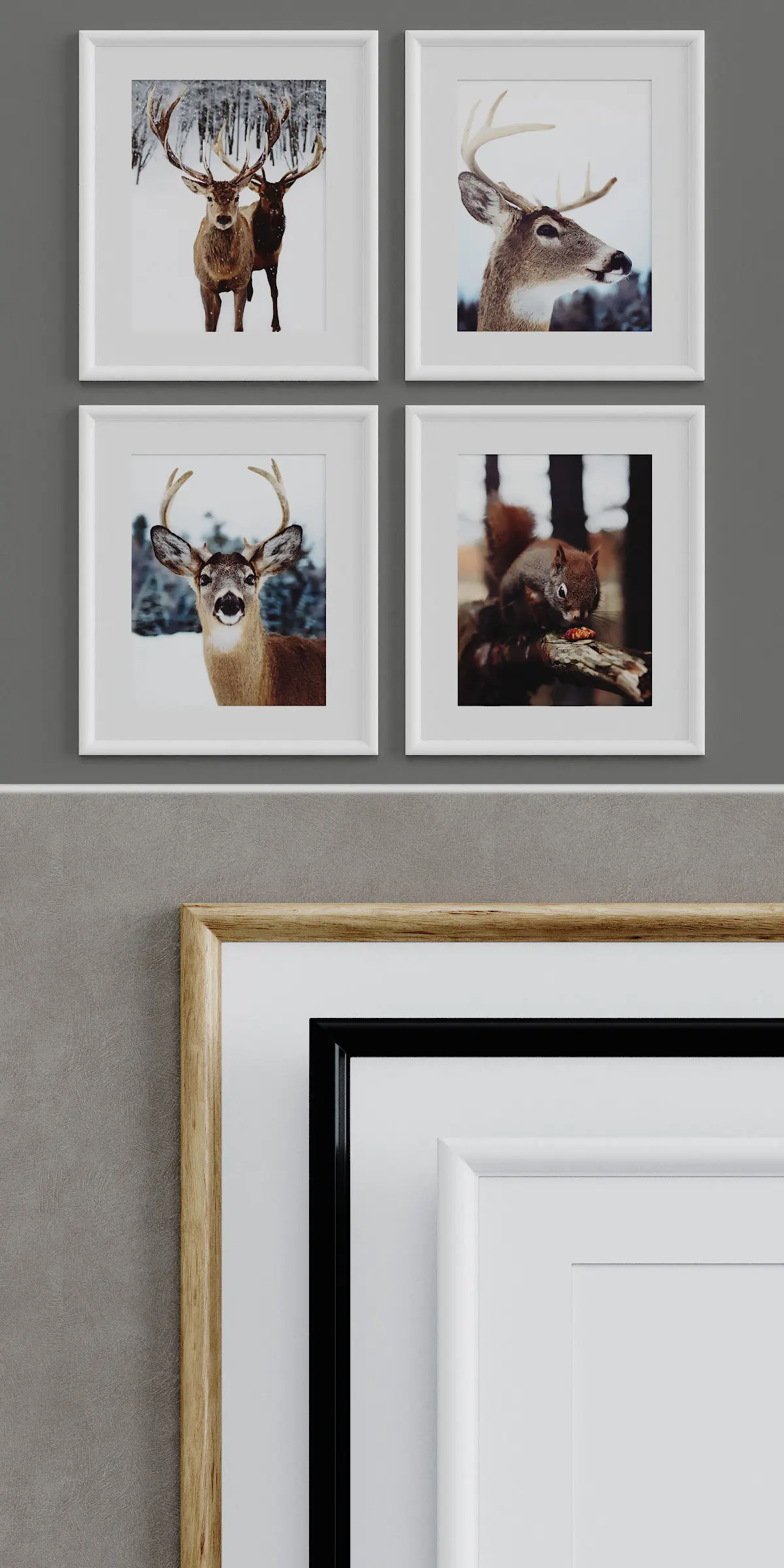 In the model there are 3 types of material for the design of frames Black, white and wood