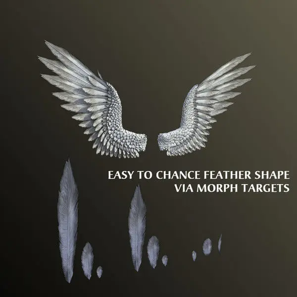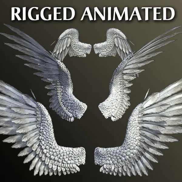 Model of a par of Bird / Angel Wings with a good riging system, animation, textures and materials. This model also allow easy modification on the wings aspect by editing feathers morph targets. Its also very easy to animate and using only 3dsmax standard tools.Originally created with 3ds Max 2010IK and animations only supported by 3ds Max files. FBX, OBJ and other formats only the static model. This model itself contains 182 separate objects (276 counting riggin, control, lights and etc), each feather is a separete object (with exception of the body small feathers)This model contains about 60.000 polygons with TurboSmooth OFF - Each feather contains 36 polygons - Very Small Feather witch cover wings body contains about 12.000 polygons - Wings body contains 524 polygonsThis model contains about 240.000 polygons with TurboSmooth ON (set to 1 iterations)This model contain most quads and some trisThis model contains Standard materials onlyThis product includes 3ds Max files for default scanline and finalRender (separate downloads). Use finalRender version for better lighting.|| TEXTURES ||Model use 5 materials 1 for the wing body and 4 for wing feathers. The 4 feather materials is actually the same, but its make easier to change the groups of feathers materials.Materials are created using digital painting.Concerning the textures list:WingBody (inside very small feathers):