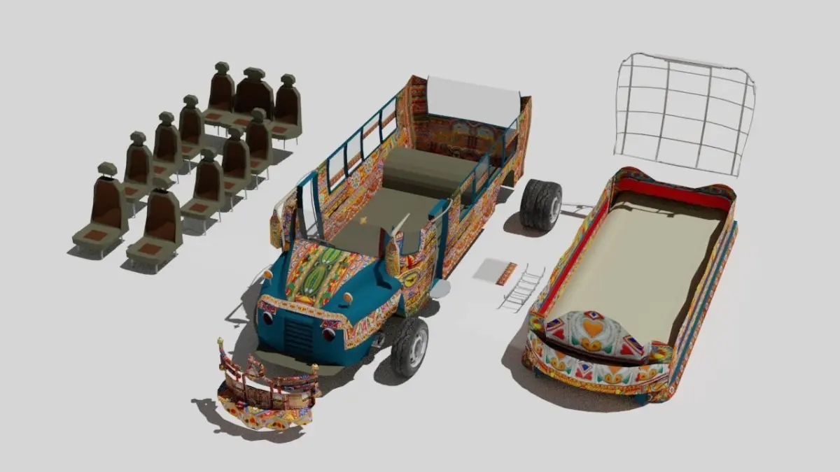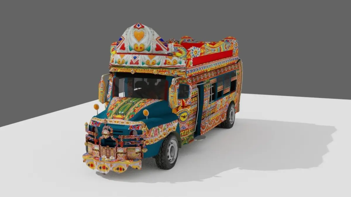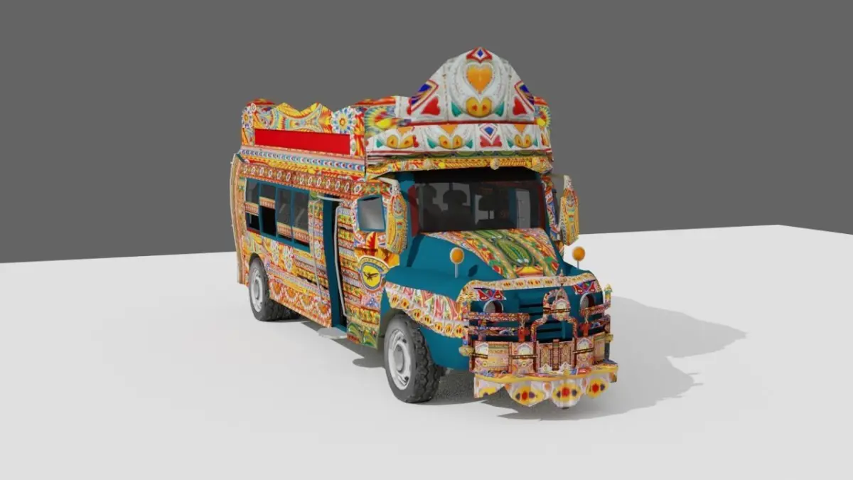 Pakistani old traditional bus made with blender for making video games and digital videos.Pakistani Culture old Nishan bus 3d model specially design in blender for making pc and mobile games.Compatible with unity 3d, android, ios, unreal engine, and other game making software.Each parts design separately, wheel, mirror, front, back, top and interior seats, steer, gear.