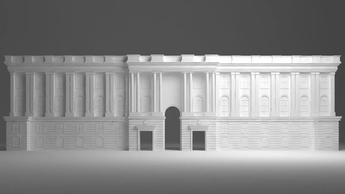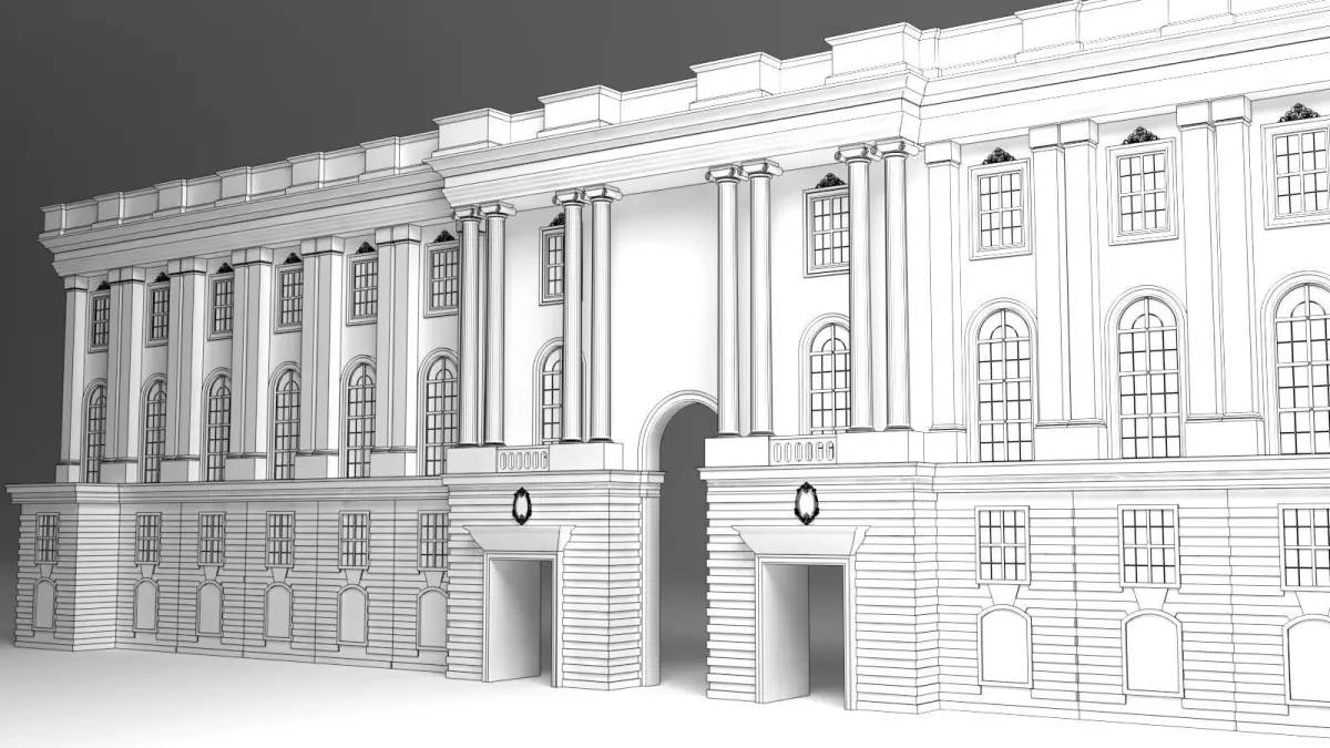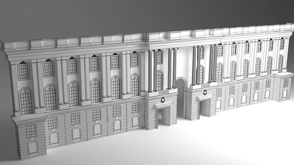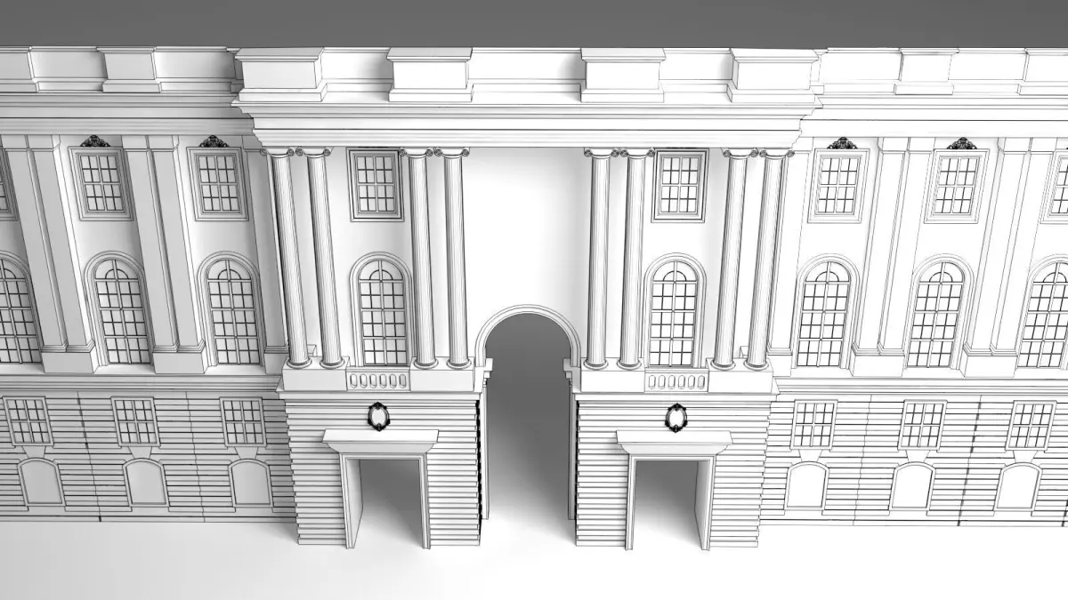 A Palace Facade 3D Model is a highly detailed and realistic digital representation of a palace's exterior architecture, designed for visualization and presentation purposes. It typically showcases the intricate design elements, including ornate columns, grand arches, detailed window frames, and expansive doorways. The model may include elements such as decorative balustrades, balconies, and sculptural features, representing historical or modern palace styles.