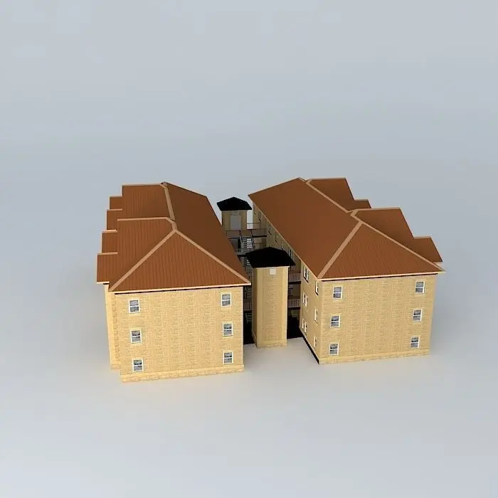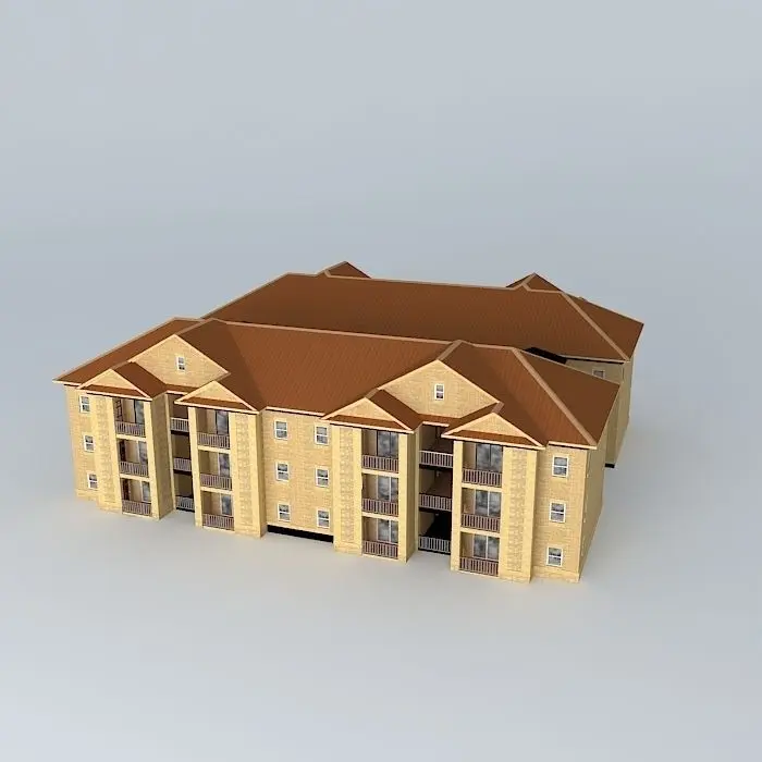 This 3D model was originally created with Sketchup 8 and then converted to all other 3D formats. Native format is .skp 3dsmax scene is 3ds Max 2016 version, rendered with Vray 3.00 Here is an apartment complex with 24 units in which I've designed. Each unit composes of 2 bedrooms, a bathroom, an open kitchen/living/dining combo, and much more! There are many things the unit offers such as a personal laundry station right there in the apartment just off the kitchen. a pantry, linen closet, coat closet, central air, and a nice big storage unit off the terrace with one's own water heater. The master bedroom has a walk in closet. These units are just like living in a house! You enter the apartments through the central atrium with planters. There are 2 sides, each with it's own stairs and elevator tower. Explore by turning off the Roof layer. Take a look at the realistic details throughout the architecture and the steel stairs and you are surely to be amazed! Enjoy and please rate. My Facebook page is provided via the link below. It has a lot of architectural elements associated with it. Give it a try :)