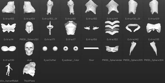 Standard zbrush character in armor made by myself. Parts is different subtools, so its easy to change remake or add somethint to him.