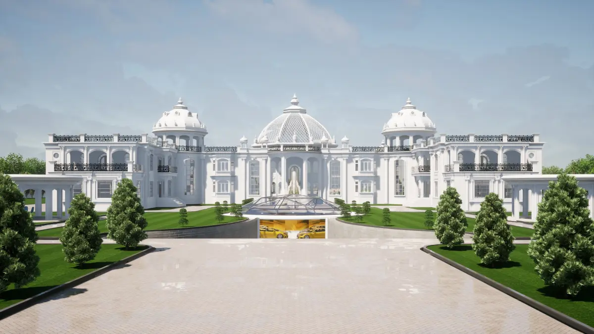 Step into a world of regal elegance and timeless beauty with The White Palace, a breathtaking 3D model of a majestic mansion that will leave you spellbound. This architectural masterpiece, meticulously crafted with exquisite detail, is a testament to opulence and sophistication.Key Features:Symmetrical Facade: The imposing facade, adorned with intricate carvings and ornate columns, evokes a sense of grandeur and timeless appeal.Domed Roof: The majestic dome, crowned with a golden finial, adds a touch of regal charm and draws the eye upwards.Expansive Grounds: Lush green lawns, manicured gardens, and a sweeping driveway create an idyllic setting for this magnificent palace.
