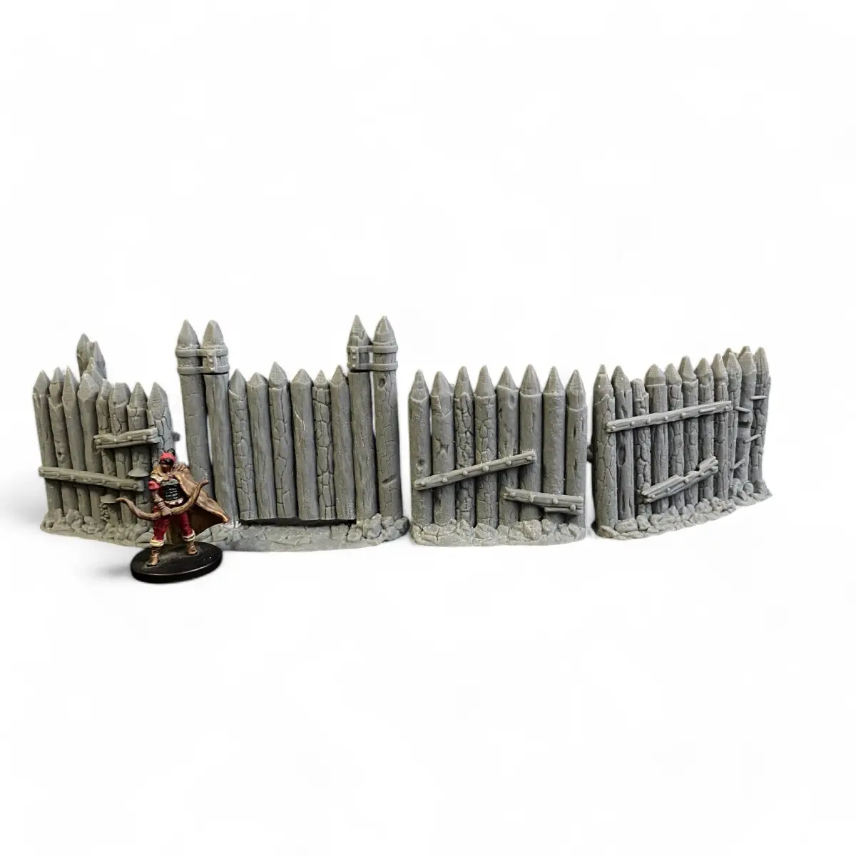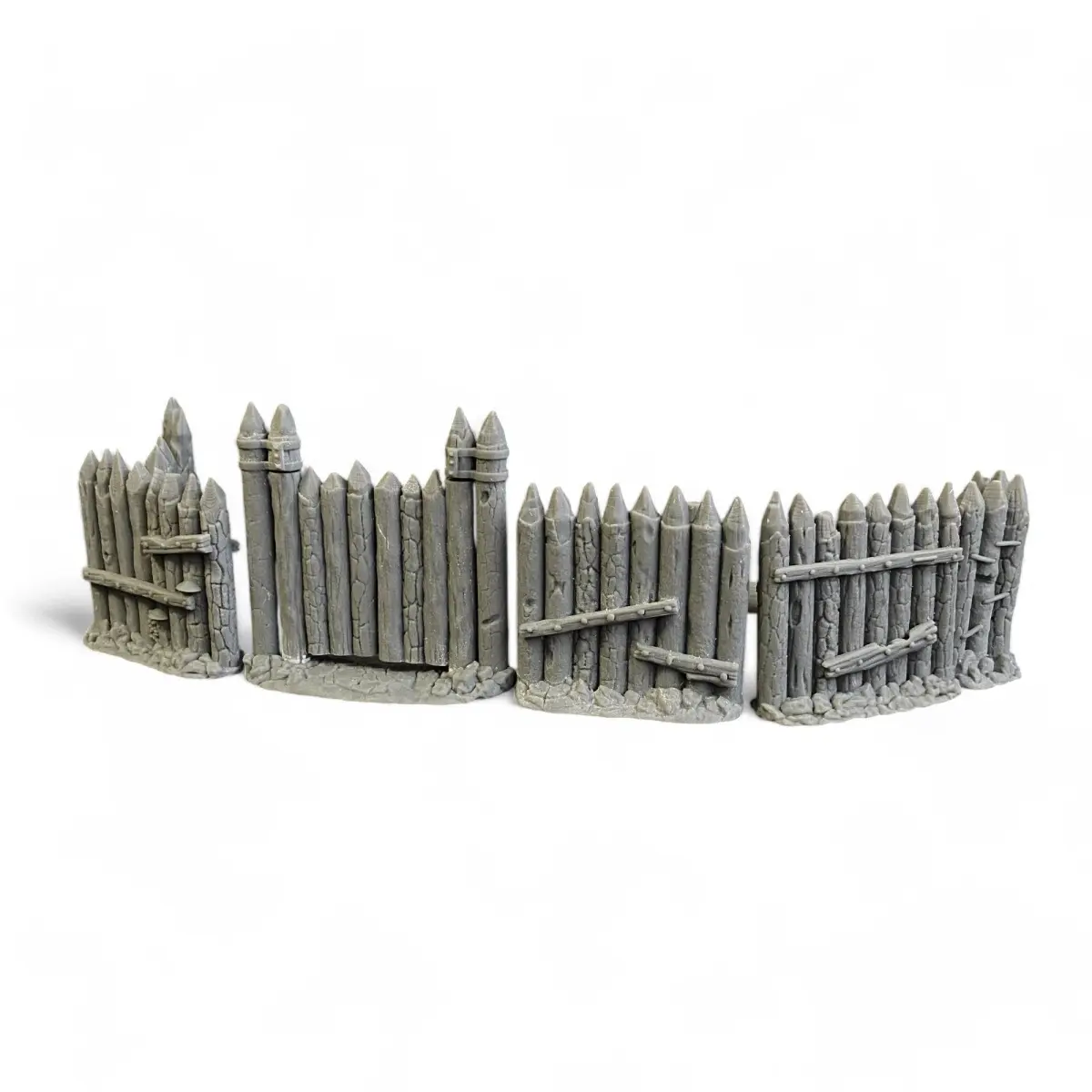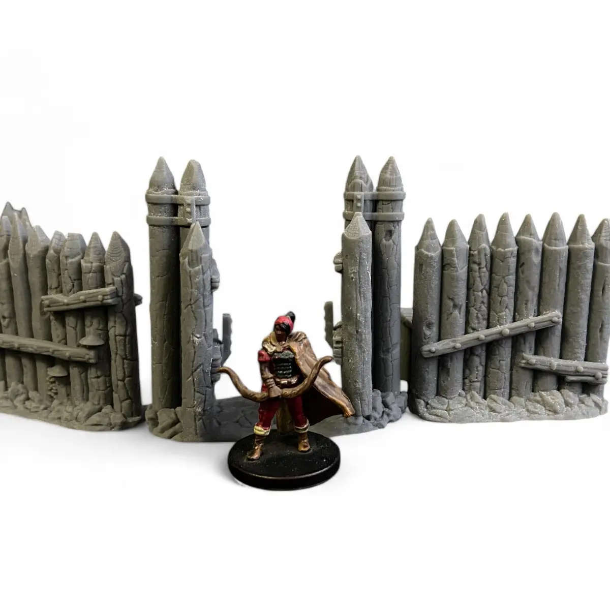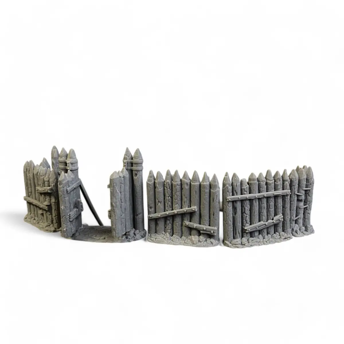 Recreate the rustic charm and strategic defense of a village with our Palisade Walls Set. This collection includes four straight wooden fence elements, one sturdy corner section, and a set of functional, openable gates. The set also features raised platforms and an access ramp, allowing miniatures to patrol the walls and add dynamic elevation to your scenes. Perfect for enhancing your tabletop scenarios, this set offers flexibility in layout and an authentic, immersive atmosphere for your medieval or fantasy dioramas. Bring your village scenes to life with detailed, realistic wooden textures that capture the essence of a fortified settlement.