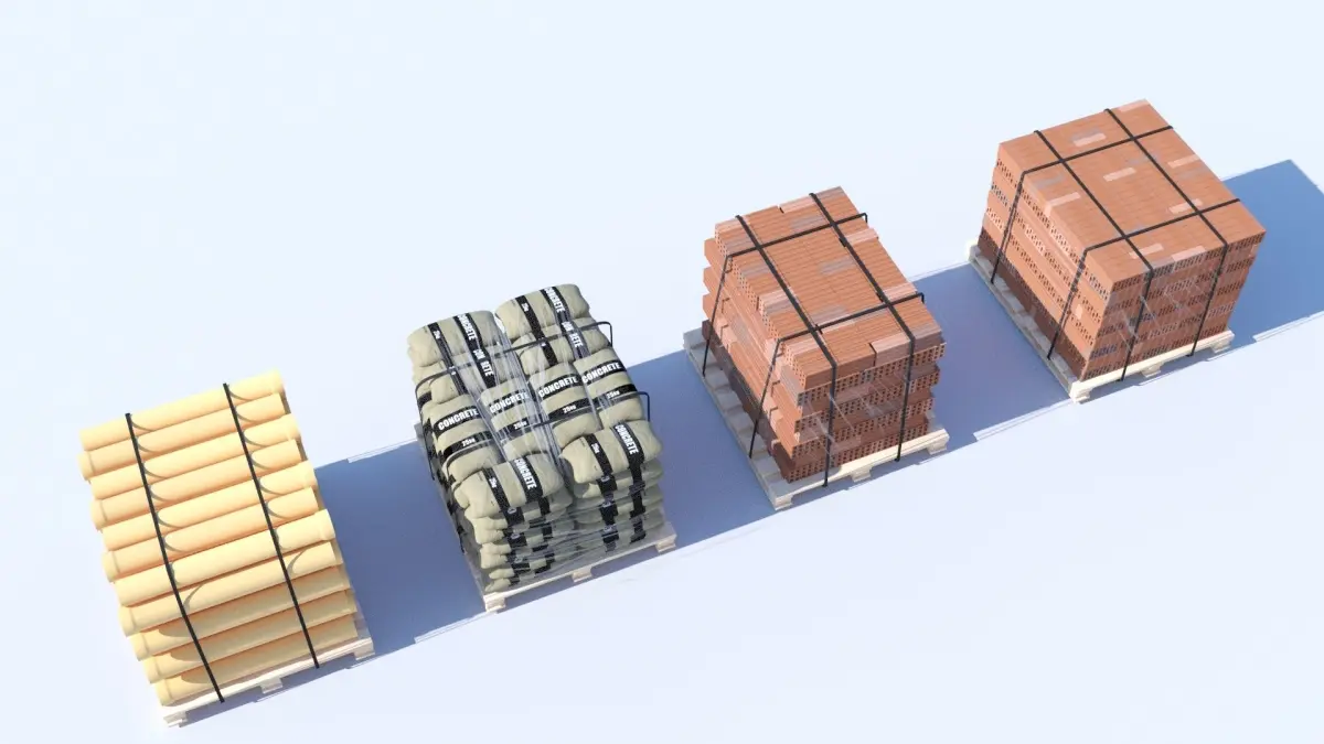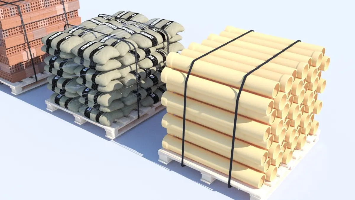 Pallet Collection with bricks, PVC Pipes and concrete sacks