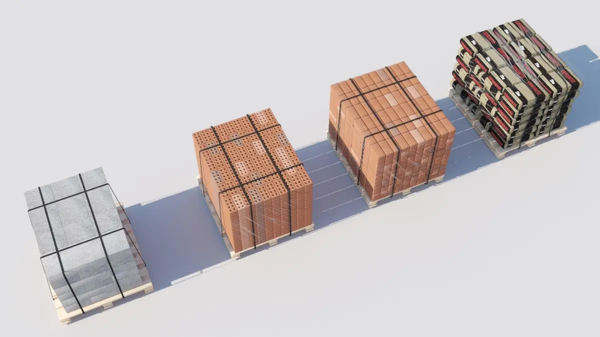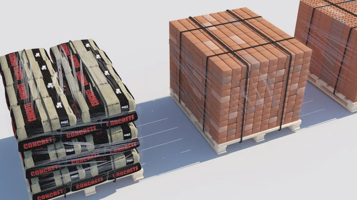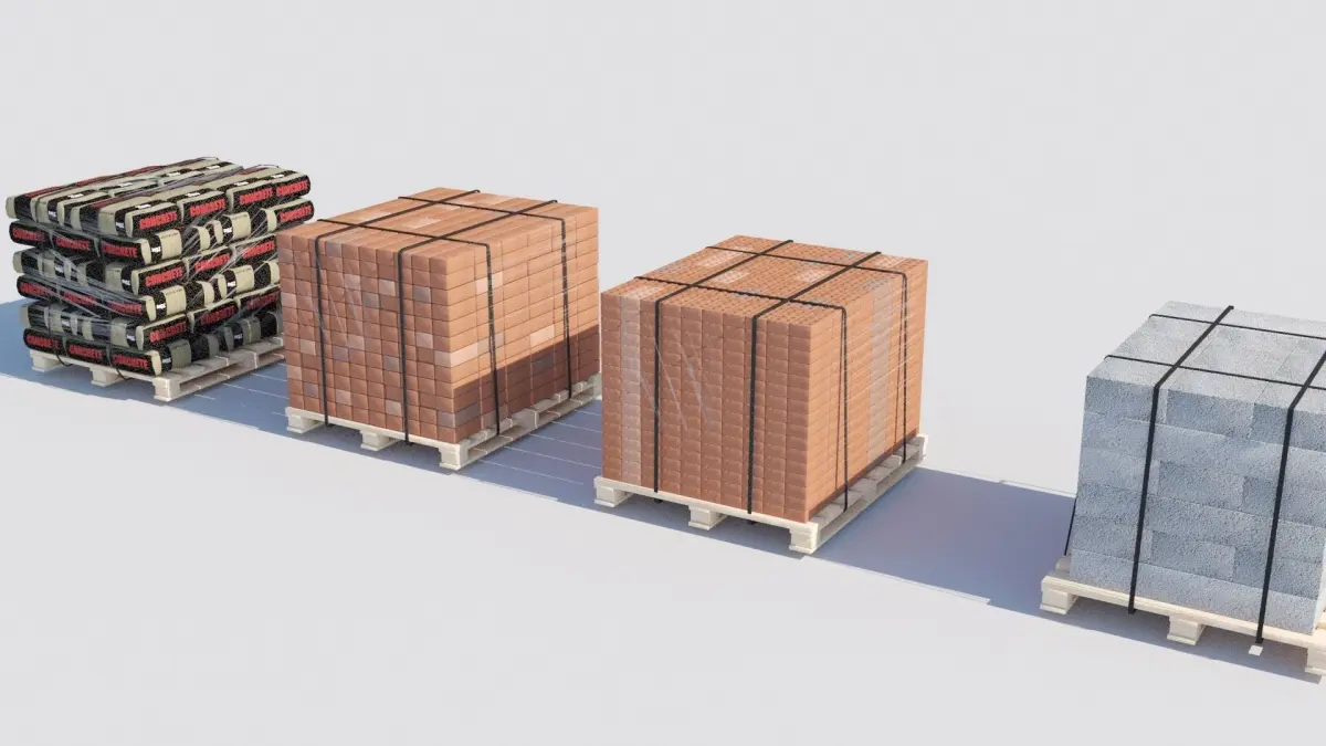 Pallet Collection with bricks, concrete blocks and concrete sacks