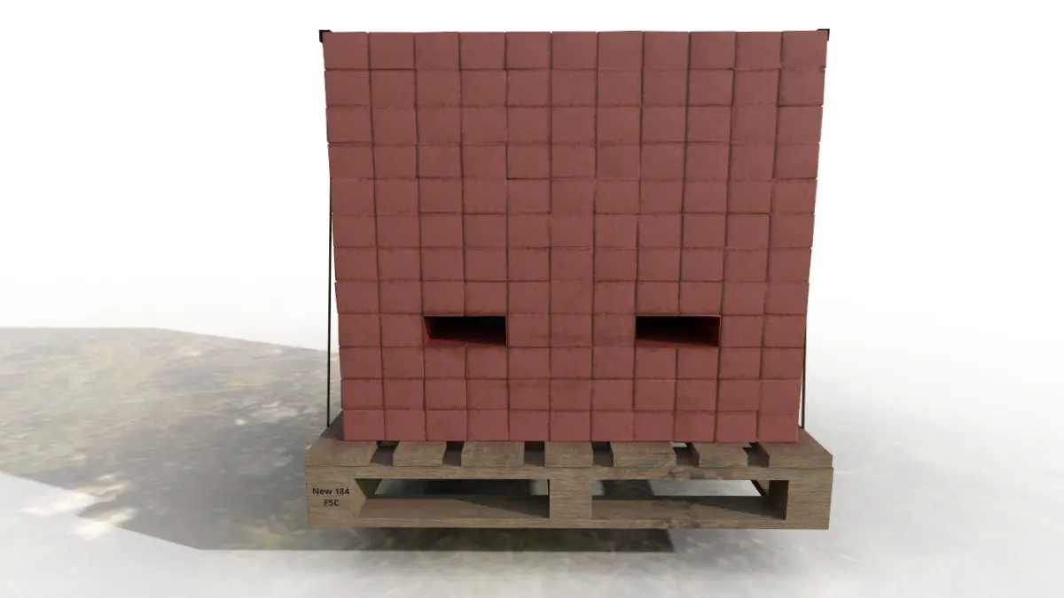 Unity game assett: prefab saved as a single pallet and 2 x 4 pallets with collidors and materials applied as shown in the gallery.