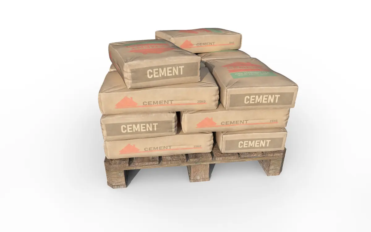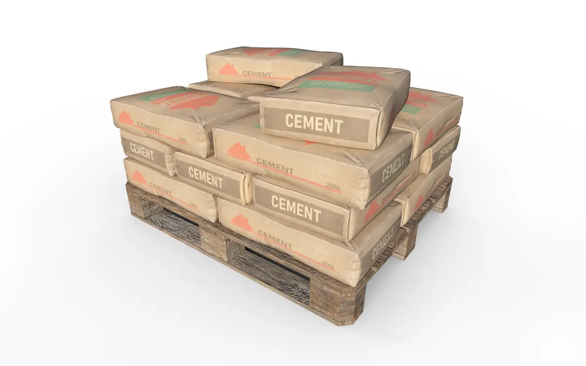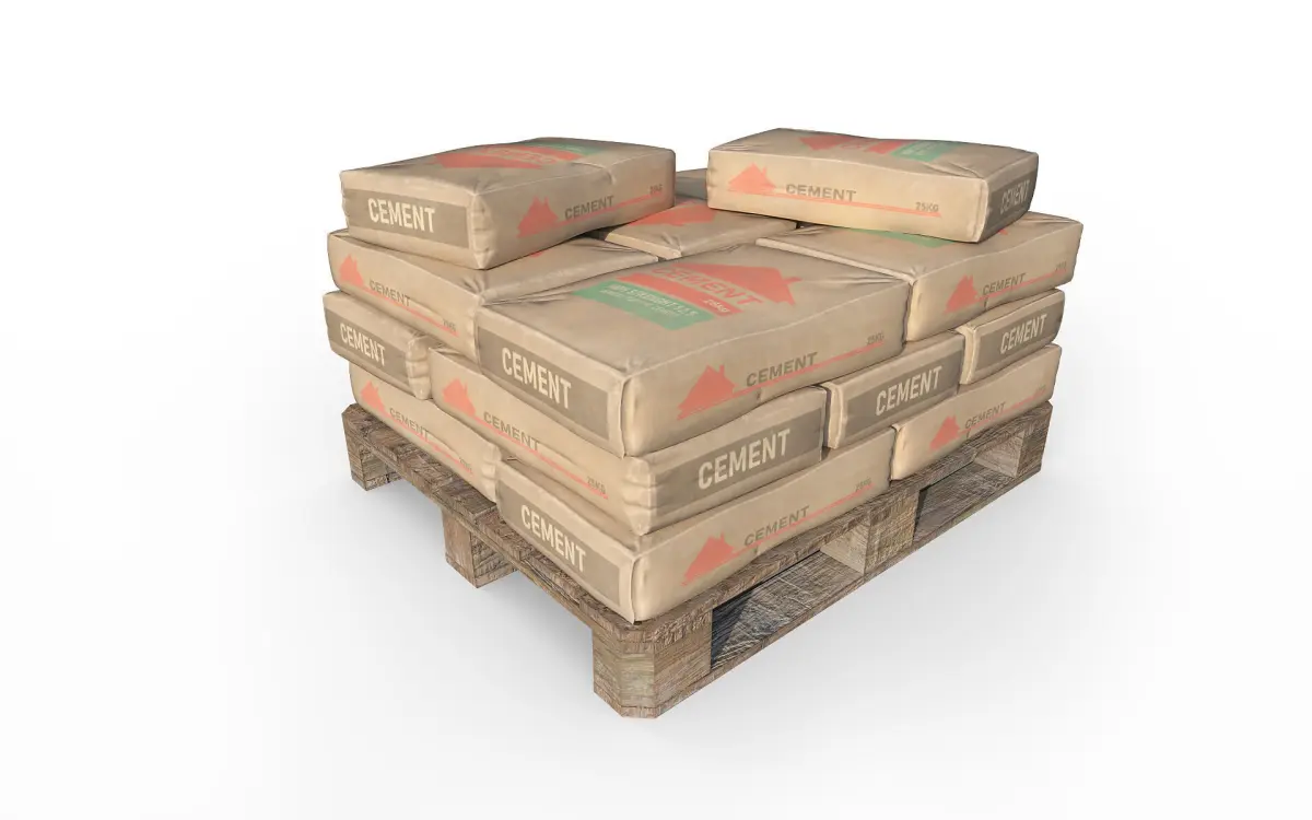 Realistic 3D model Pallet with Cement Bags.This model consists of the correct geometry, details and textures.3D model ideal for games and 3D-photorealistic visualization.This 3D model has a textures of the format 'PNG', the textures size is 4096x4096.TEXTURES: AO/Base color/Metallic/Roughness/Height/Normal/.