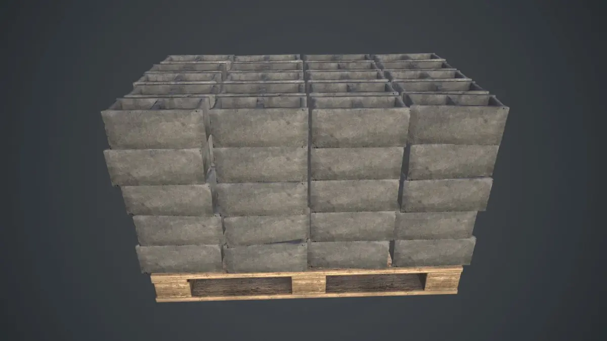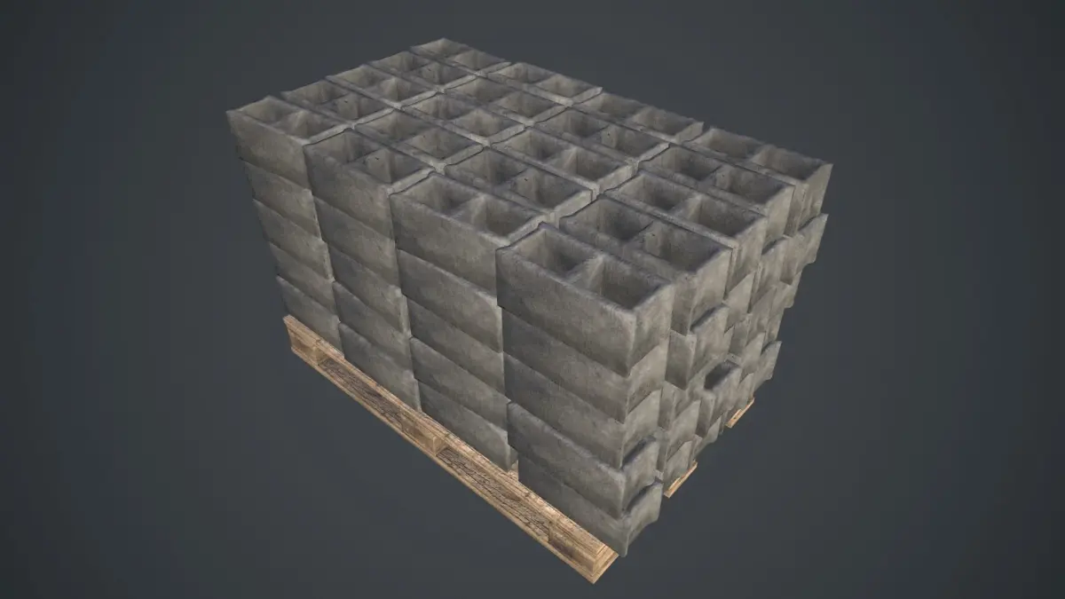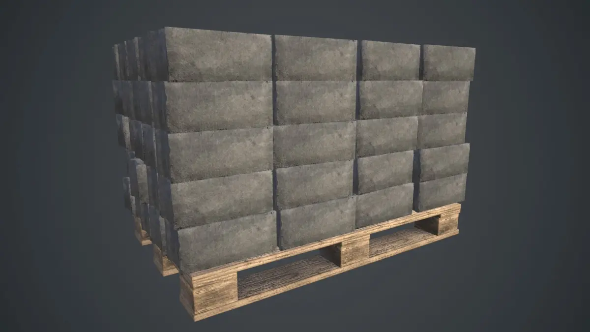 Pallet of bricks: https://www.cgtrader.com/3d-models/various/various-models/palette-of-concrete-blocks-pbr-game-ready