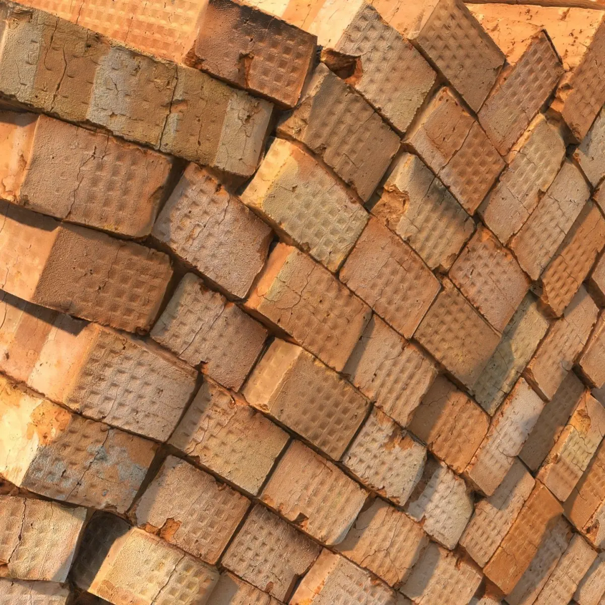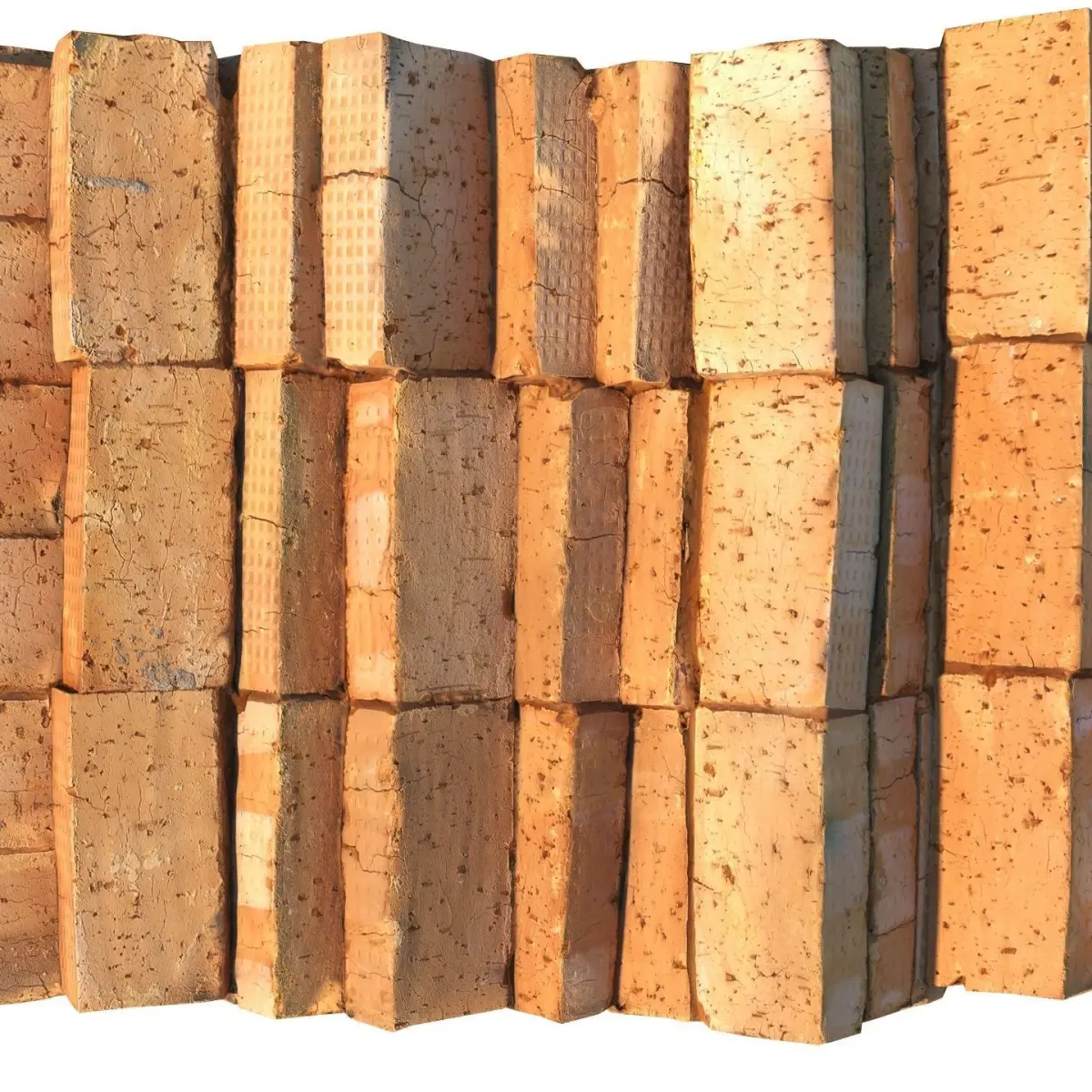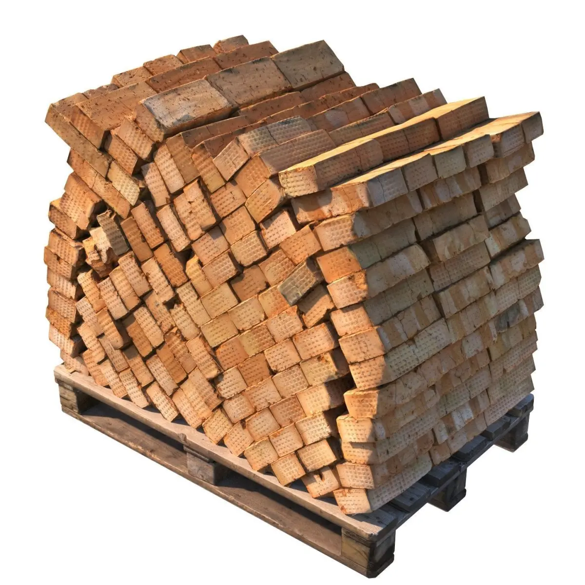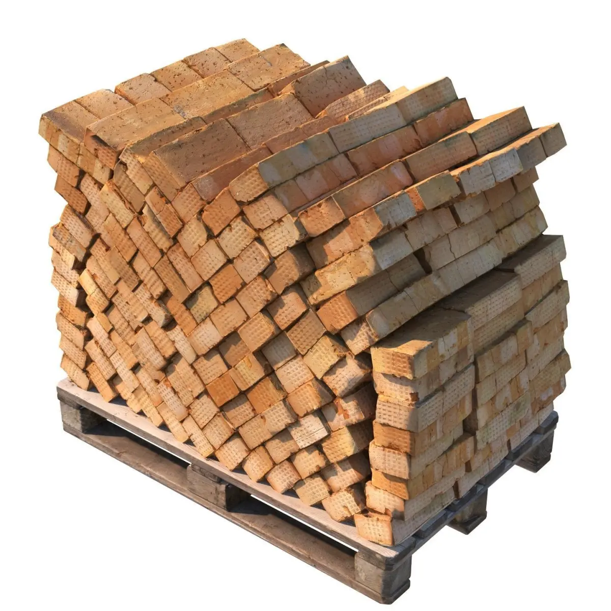 A stack of red bricks on a pallet, model created by scanning.
