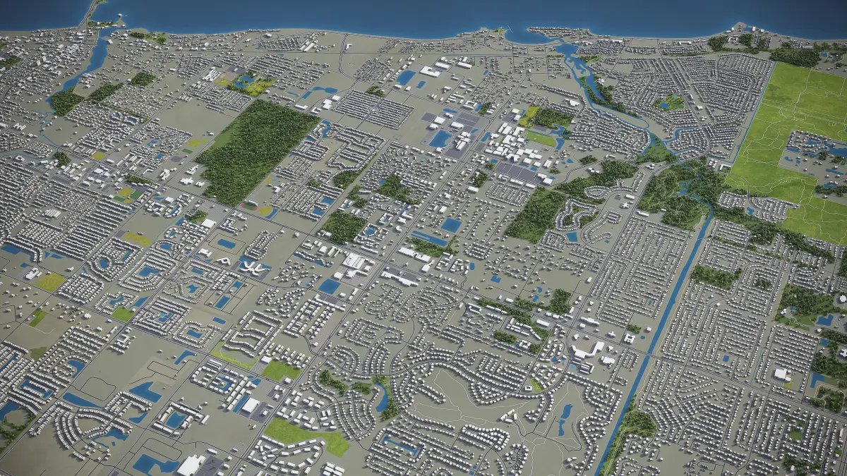 - Full city extents up to 100 x 100 km — or crop to an area of interest for better format compability and scene performance