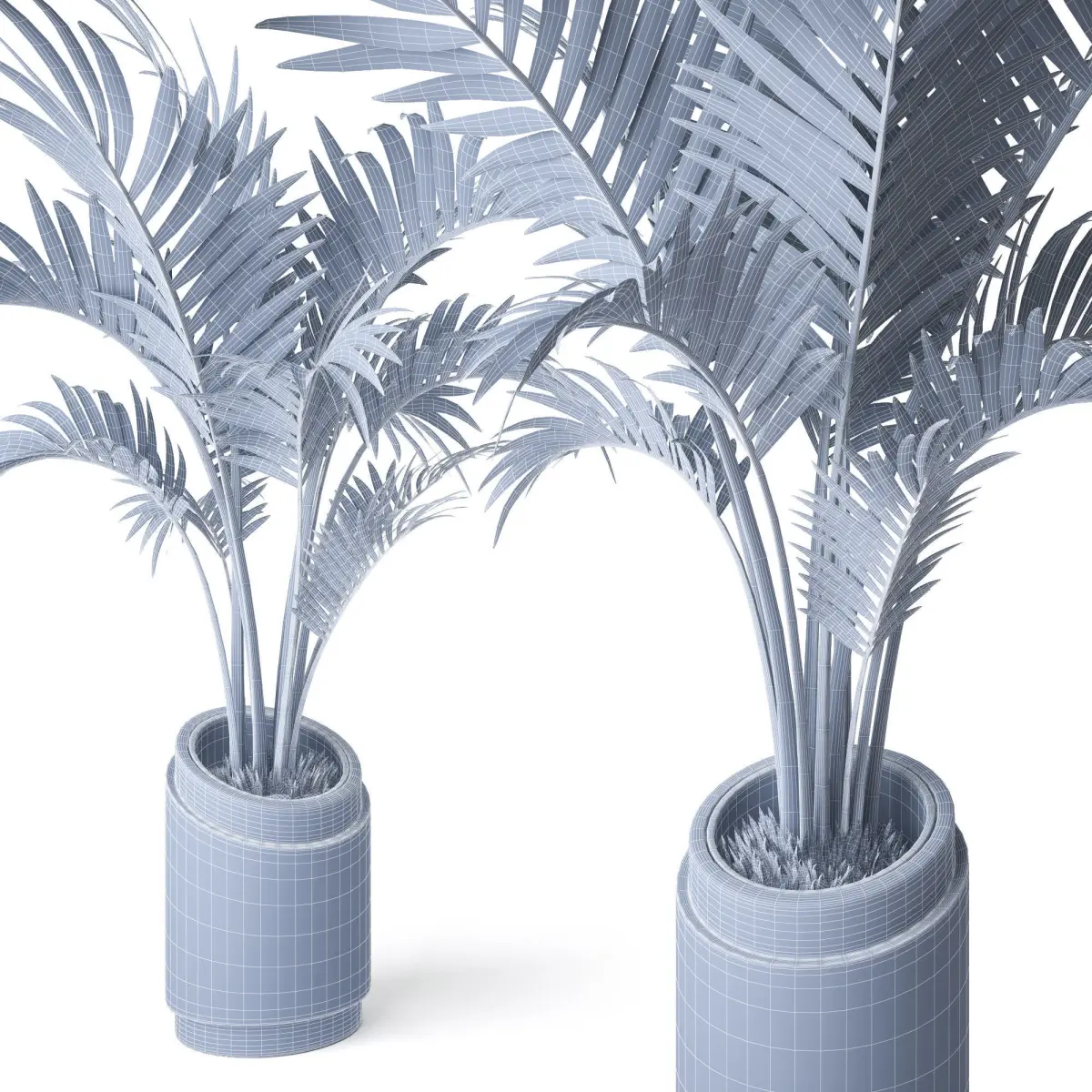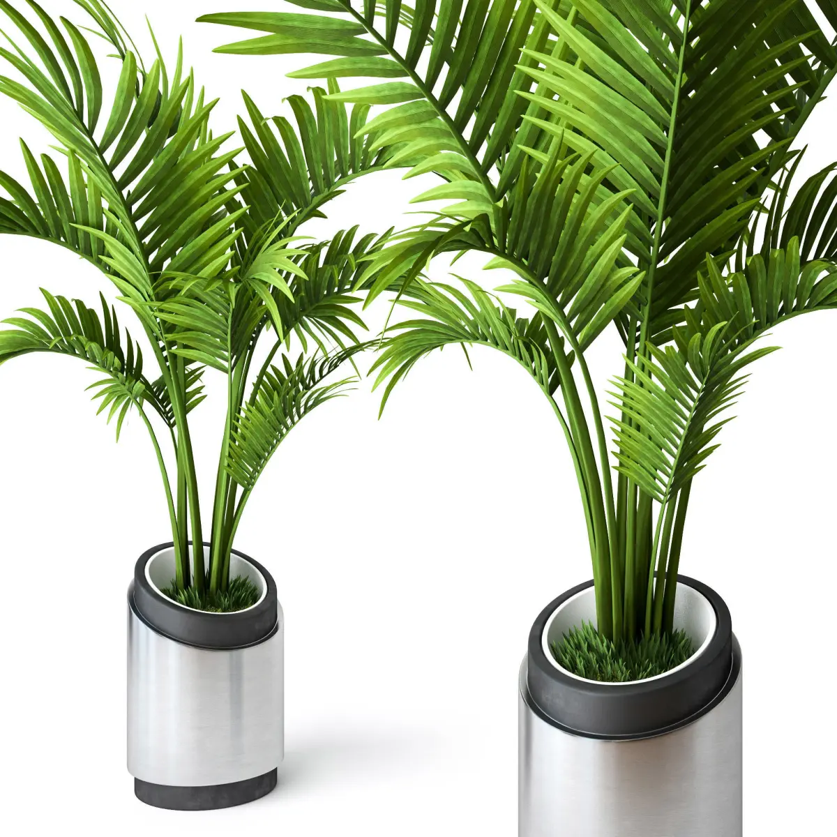Set of two decorative plants Howea in stylish and modern flowerpots