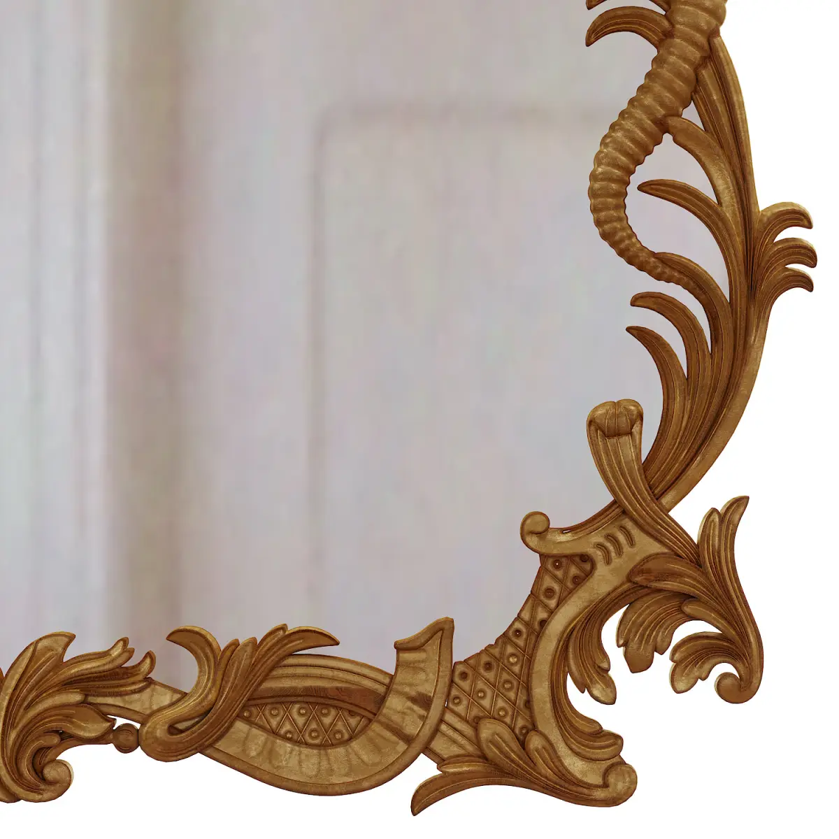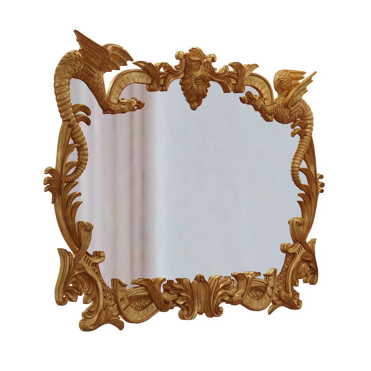 This highly detailed 3D model of an antique-style baroque mirror is ideal for interior visualization, historical set design, or decorative asset use. The ornate frame features intricate carvings, stylized dragons, and classical flourishes, faithfully capturing the luxurious aesthetic of 18th–19th century Italian design.