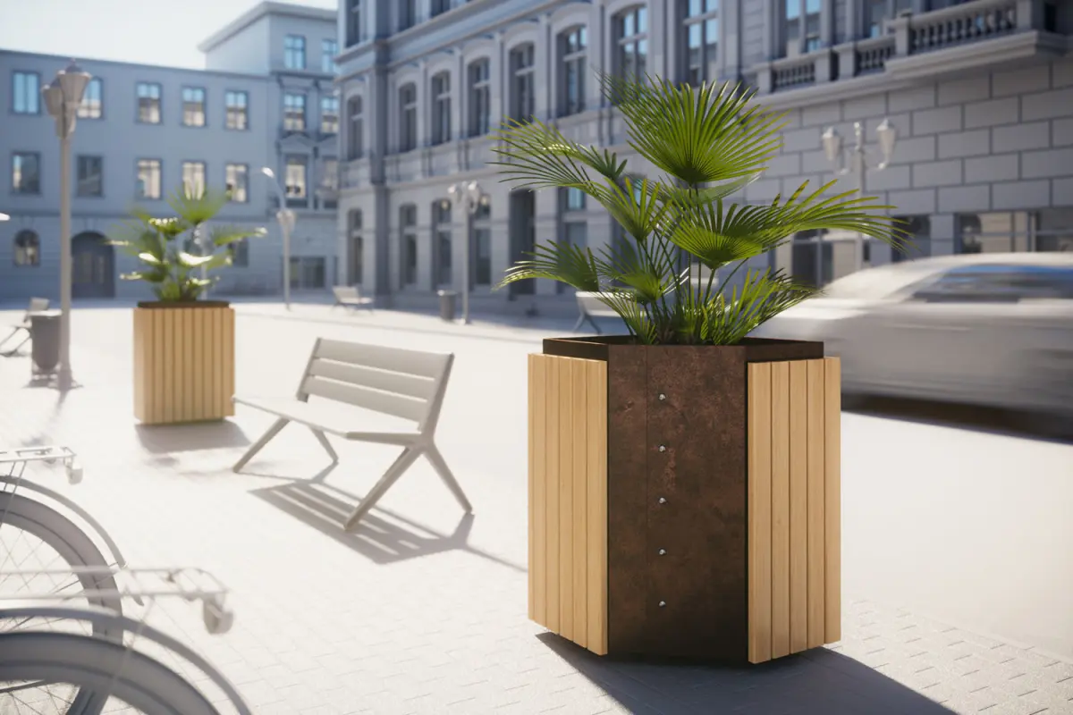 This 3D model includes palm tree. Sapling placed in a pot made of two different materials, wood and concrete.Model prepared for 3d architectural visualisations and other graphic works.