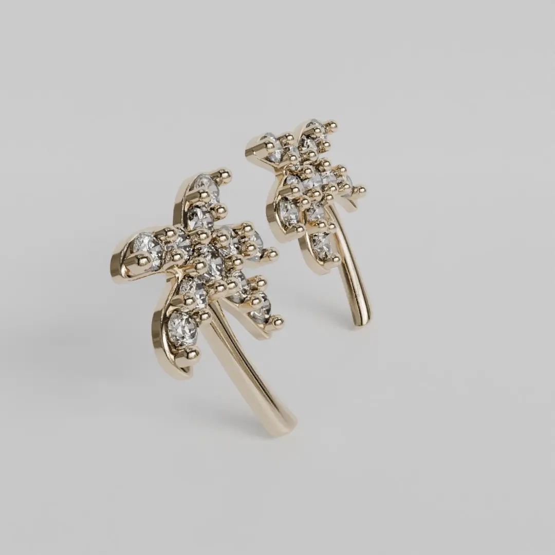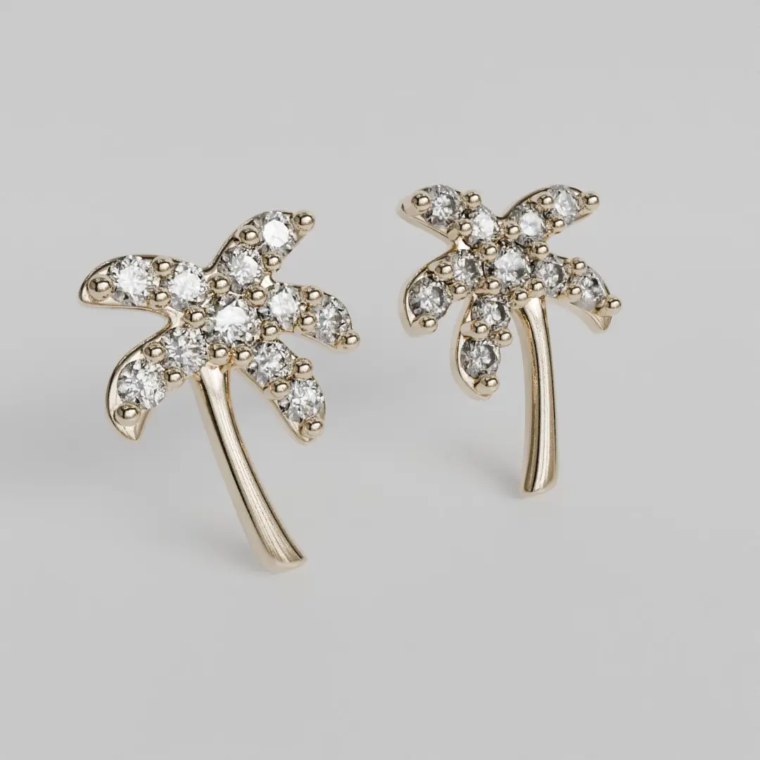Small palm tree with diamond inlays on the leaves1 diamond of 1.25 mm10 stones of 1 mmApproximately 1 gram for 18 karat gold