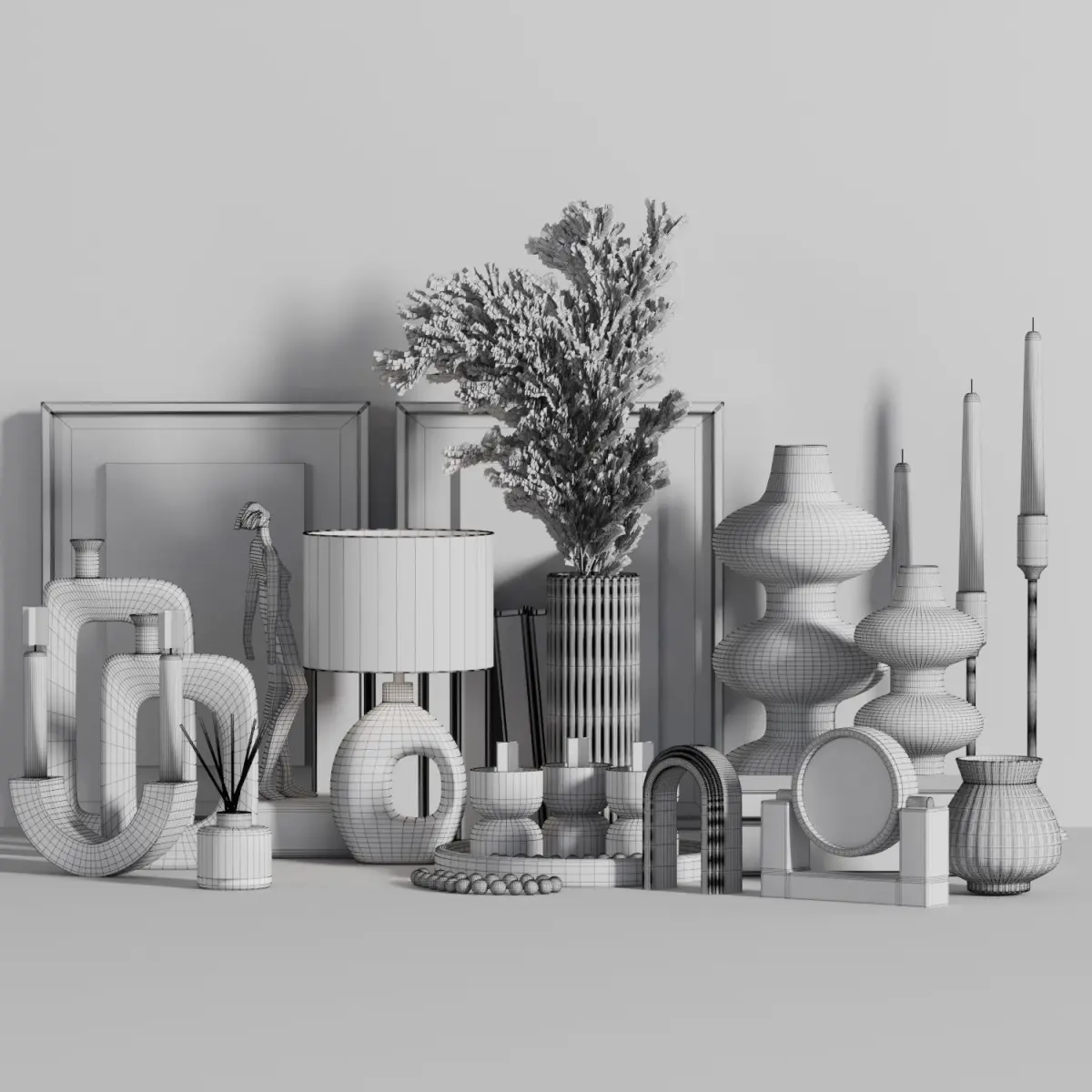 3dsmax2015 , vray , corona , fbxa collection of decorative set include : pampas , vases , books , candles , frames , ...clean topology