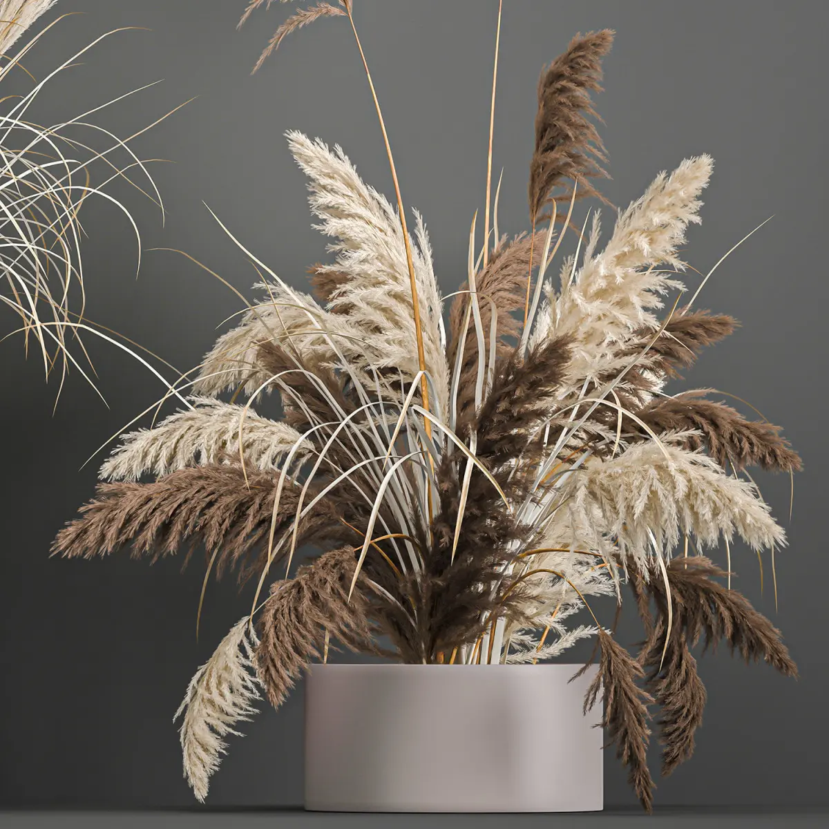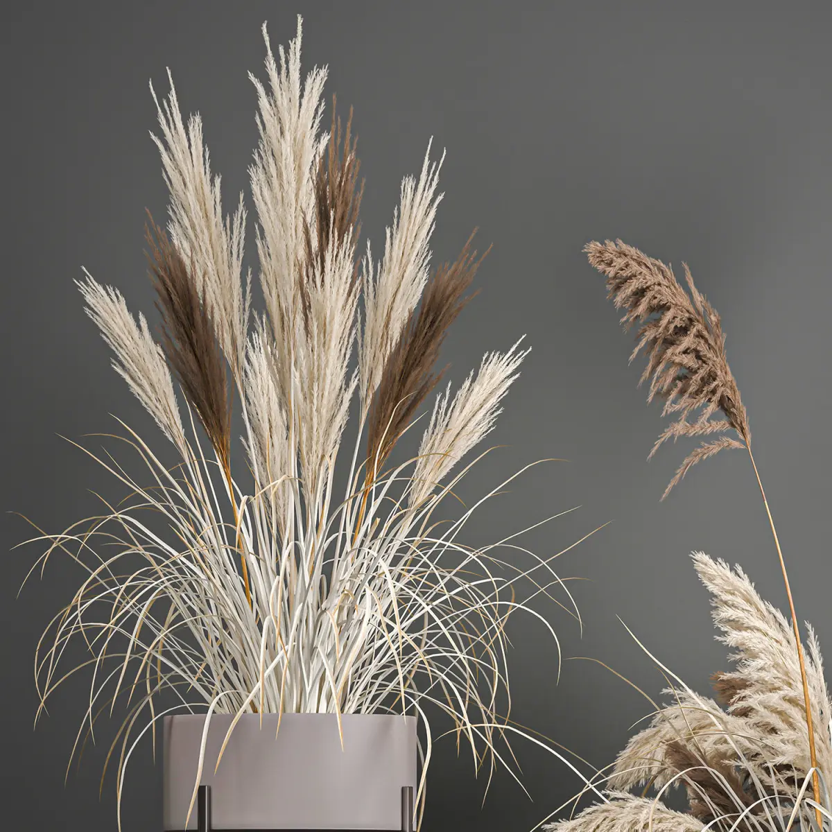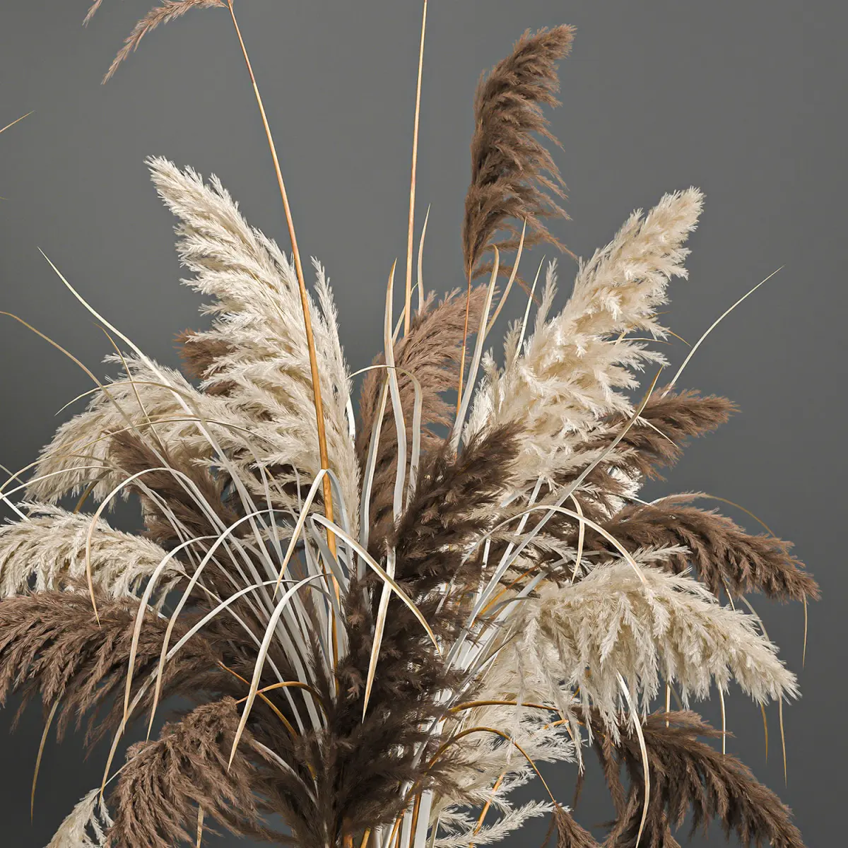 Decorative Bouquet of dry reeds in a vase for decor and interior design.Decorative plants for outdoor and interior in metal pots.Bouquet of dry bleached flowersPhragmites australis - Common reed.Dry reed - Dry white reed.Dried flowers, dry grass.dry, stabilized, paintedCortaderia, pampas, pampas grass.Dried flowers decor - branches, pampas grass.