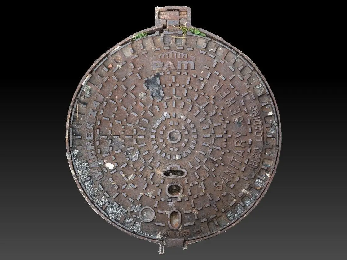 This Manhole/Utility cover is a High Resolution 3D scan that is suitable as a direct reference for modeling and retopology, and high resolution texture baking. The model is aligned and centered to a plane for easy orthographical viewing. Great for game texture creation, high detailed renders, and entertainment