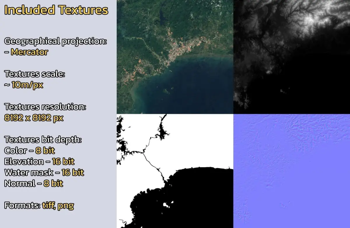 Warning: minor clouds/artifacts may be present on the diffuse color satellite texture due to the nature of the dataset. Check product images.