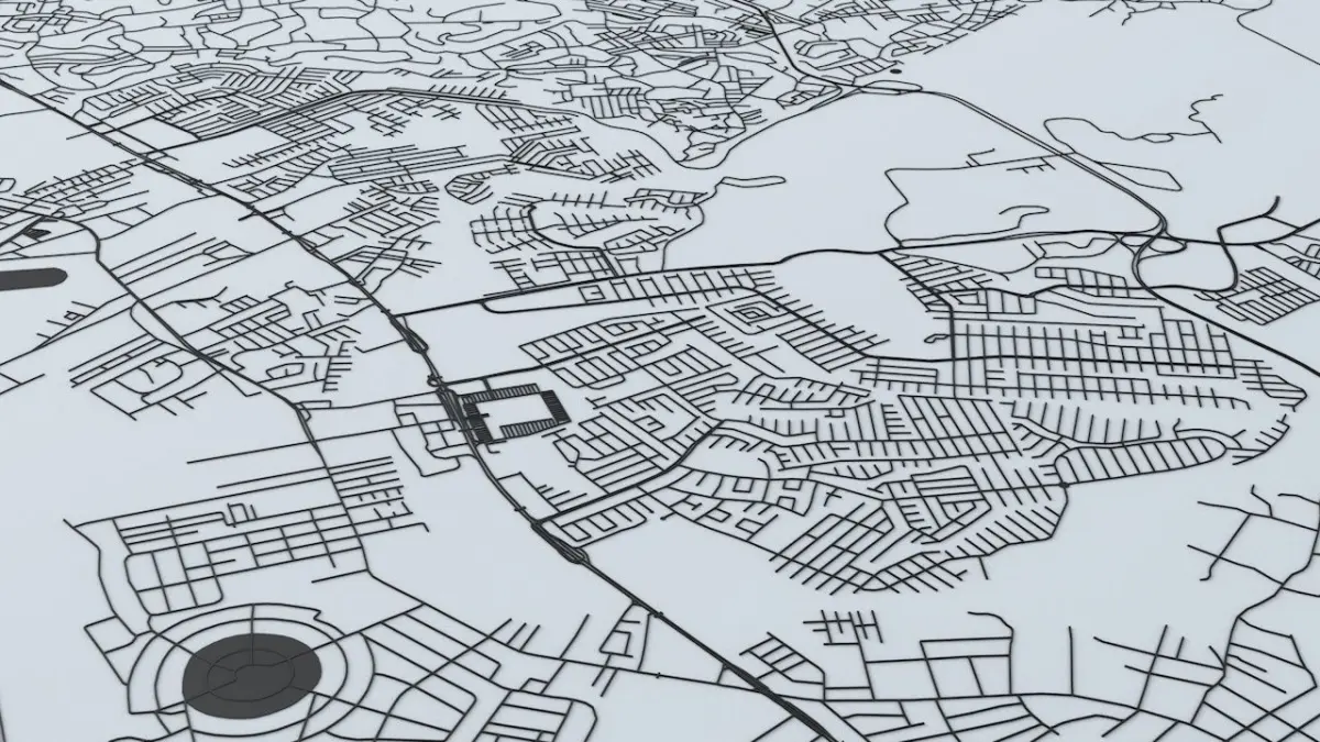 - the model is positioned on a flat surface (road network is on the “floor” - no elevation data included)