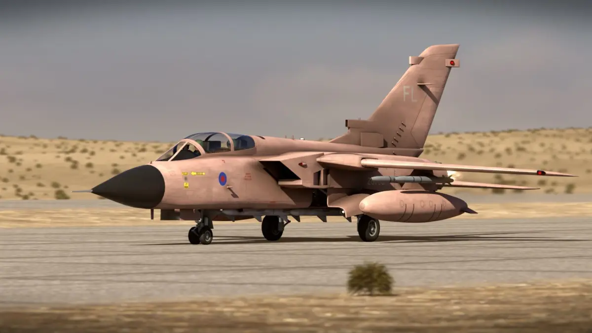 Detailed model of a Panavia Tornado ADV F3 in the colour scheme used by the RAF during Operation Desert Storm in 1991.