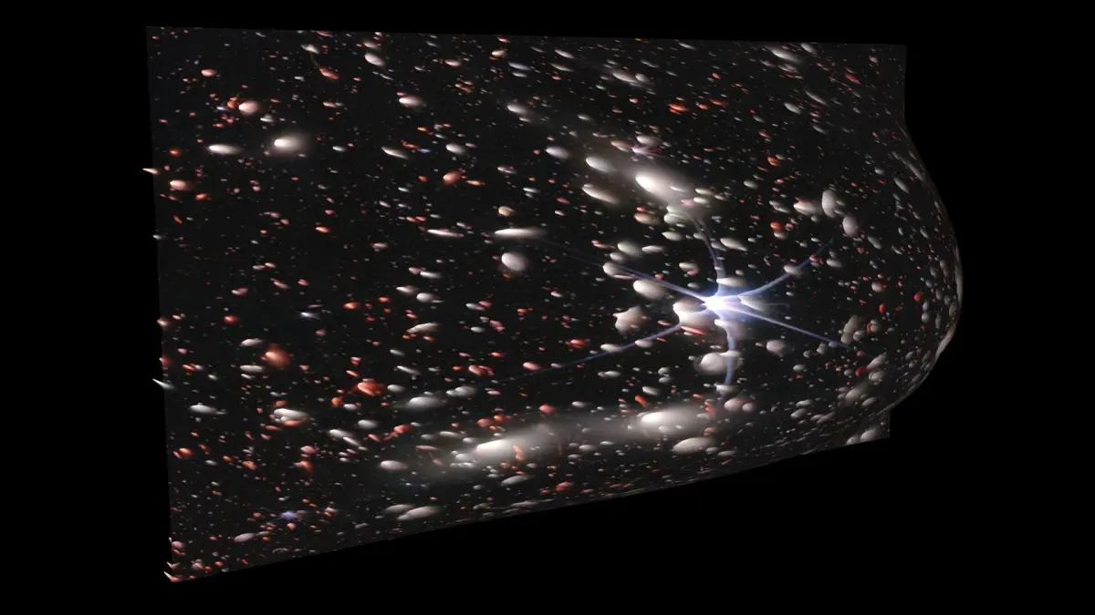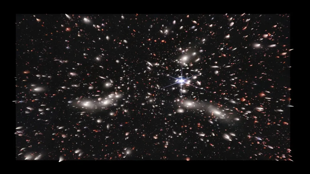 Pandora's Cluster(Abell 2744), nicknamed Pandora's Cluster, is a giant galaxy cluster resulting from the simultaneous pile-up of at least four separate, smaller galaxy clusters that took place over a span of 350 million years, and is located approximately 4 billion light years from Earth. The galaxies in the cluster make up less than five percent of its mass. The gas (around 20 percent) is so hot that it shines only in X-rays. Dark matter makes up around 75 percent of the cluster's mass. This cluster also shows a radio halo along with several other Abell clusters. It has a strong central halo, along with an extended tail, which could either be relic radiation, or an extension of the central halo. Renato Dupke, a member of the team that discovered the Cluster, explained the origin of the name in an interview: We nicknamed it ‘Pandora's Cluster’ because so many different and strange phenomena were unleashed by the collision. In February 2023, NASA's James Webb Space Telescope captured unprecedented details of Abell 2744, revealing previously unseen galaxies and offering insights into the early universe. This remarkable observation underscores the ongoing exploration of Pandora's Cluster and its significance in understanding cosmic evolution.