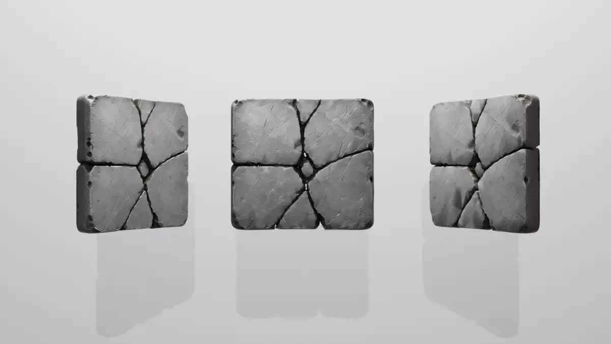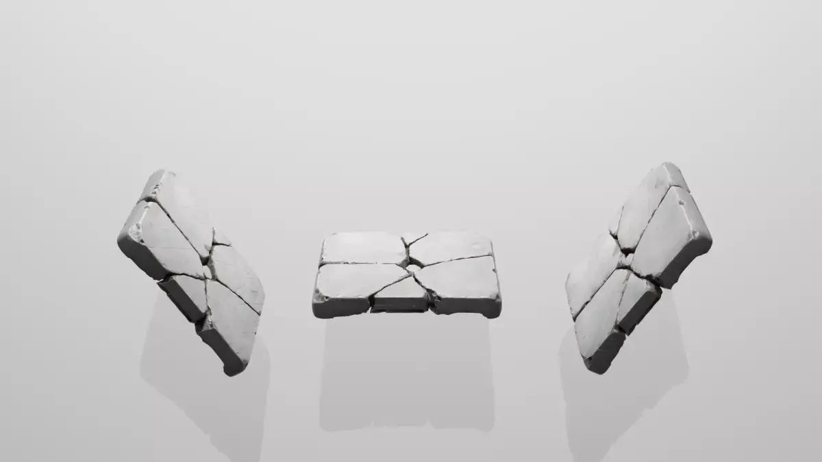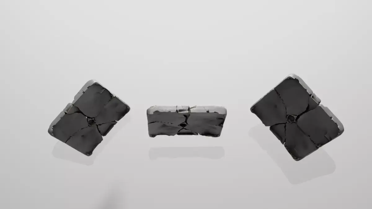 This 3D model represents a small broken tile fragment, suitable for games, advertising, film, and VFX.