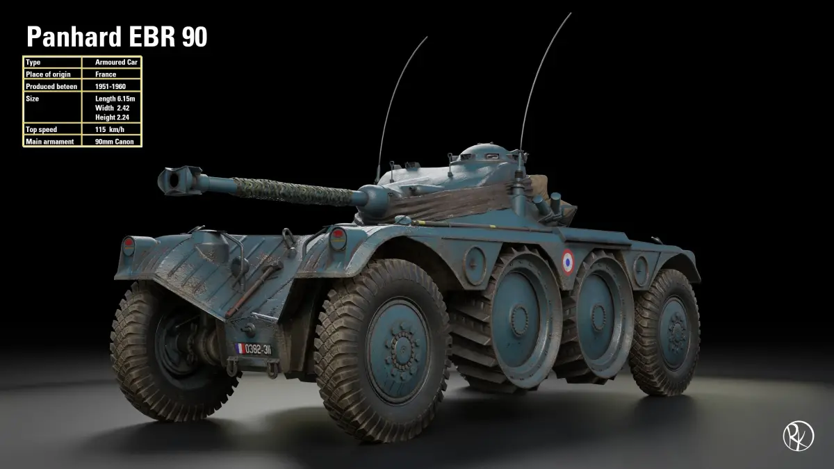 Being carefully crafted with realism and performance optimization in mind, this model will definitely help you to enhance your project and get the most out of your renders and animations.The „Panhard EBR 90“ is a wheeled reconnaissance vehicle, produced by Panhard in France from 1951-1960.