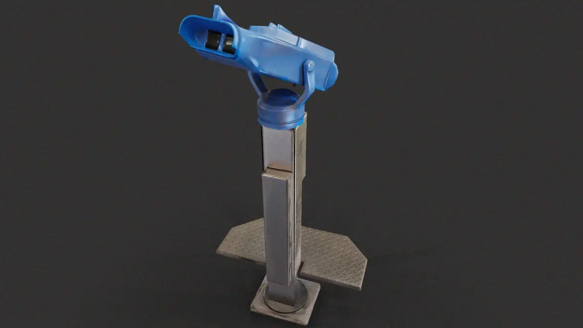 Public binocular/telescope 3D prop asset packed together with a fully textured concrete wall. Coin-operated binocular approximates to 1400 polygons and concrete fence 40. Comes with PBR texture maps of Albedo/Diffuse, Normal, ORM channel-packed Ambient Occlusion (AO), Roughness and Metalness. This low poly 3D model is a great asset to set dress your game scenes or place as a background prop.