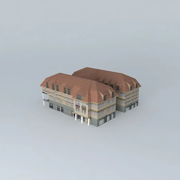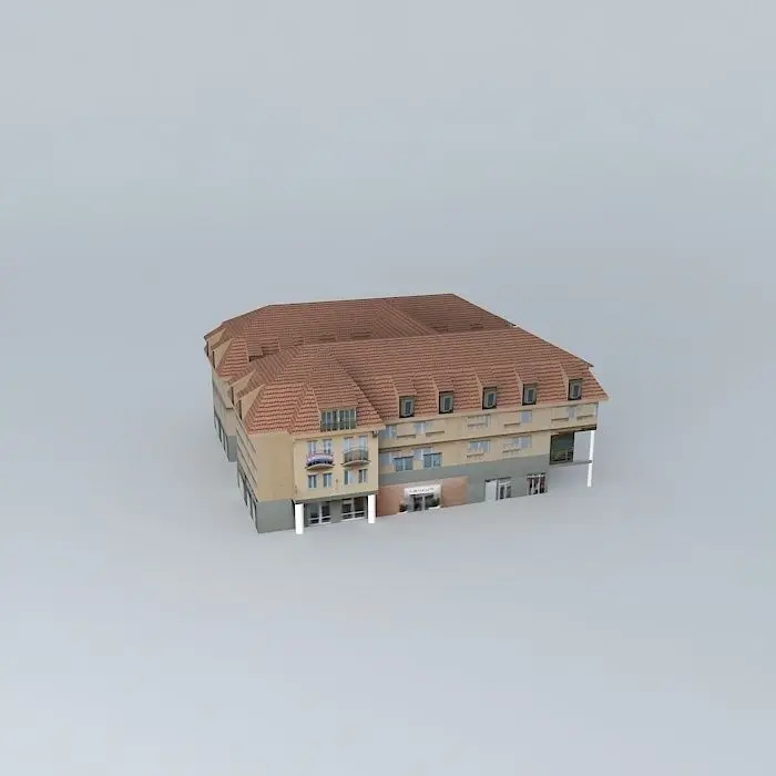 This 3D model was originally created with Sketchup 8 and then converted to all other 3D formats. Native format is .skp 3dsmax scene is 3ds Max 2016 version, rendered with Vray 3.00 Three-storey roof-mounted H alaprahzú atypical building in the middle of Main Street. The white kasetély was demolished and the buildings next to it is the site of the postal road construction sarkán.A post-transition eredménye.A ground floor of small shops, Panorama restaurant, which is now the site of confectionary Wagner is. On the first floor offices, dental offices, are owned company office in the attic there are apartments.