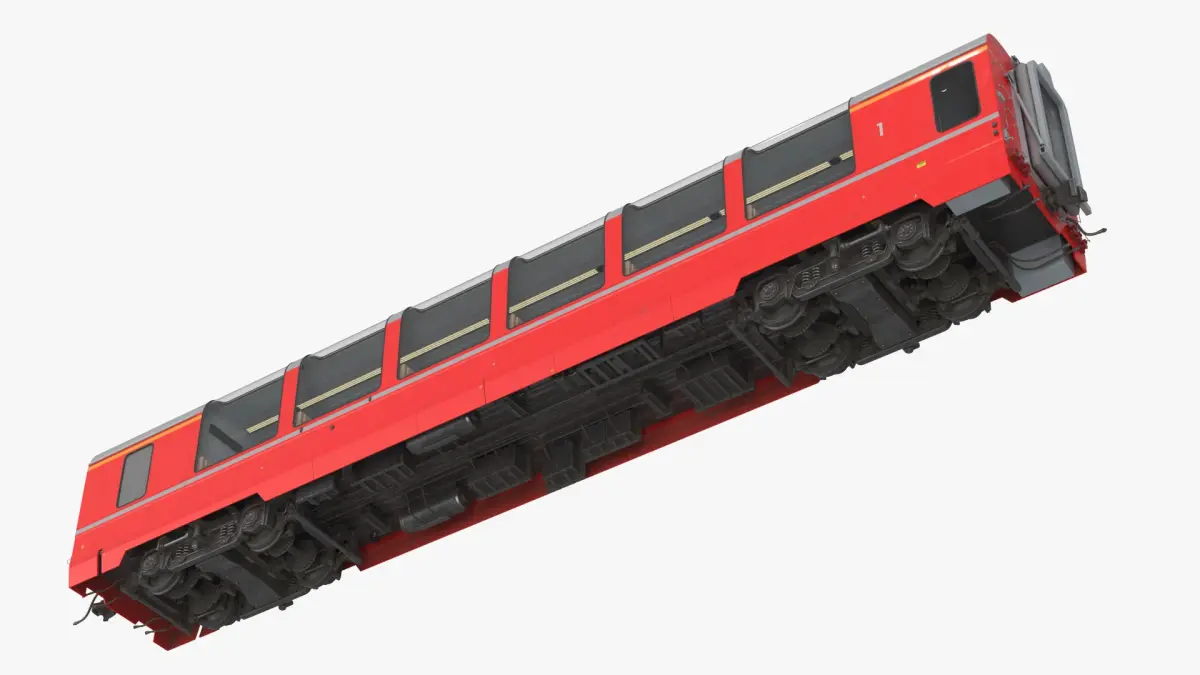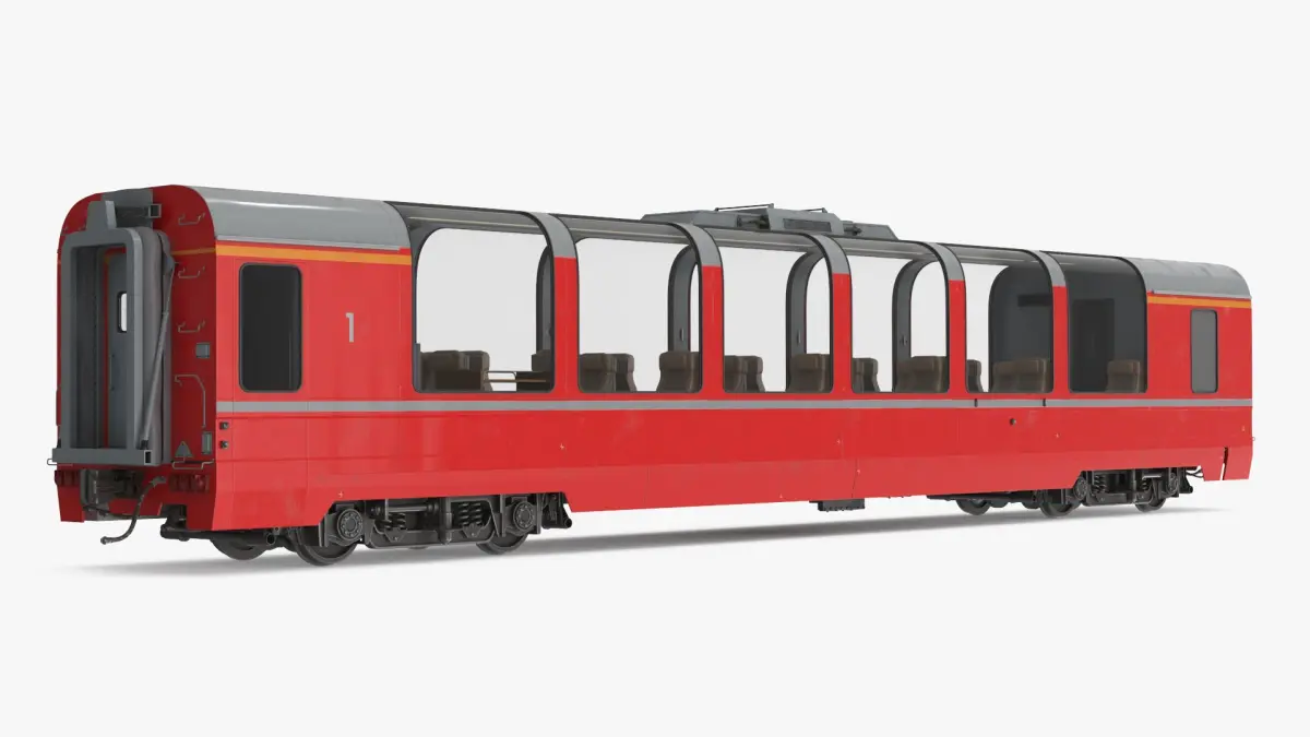 Panoramic First-Class Passenger Railcar Red with Interior is a three-dimensional model of luxury passenger train car, designed for scenic and comfortable railway journeys.