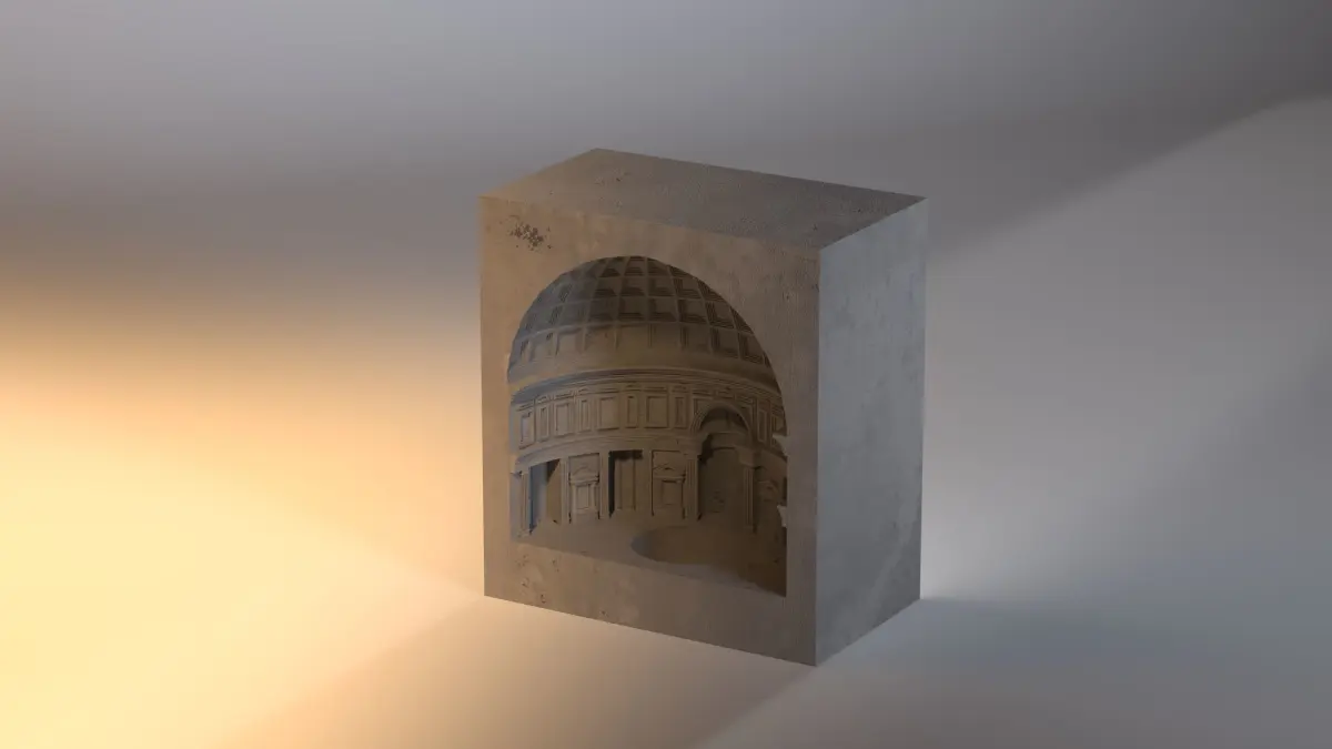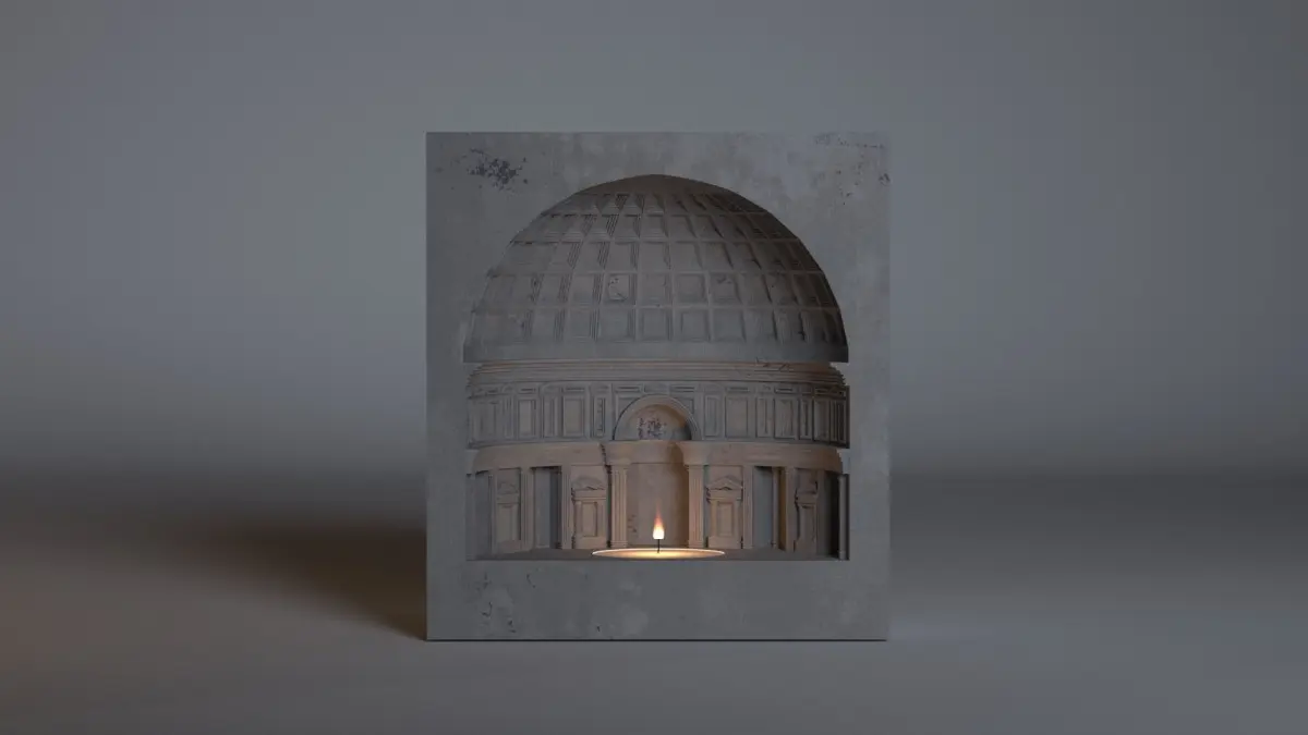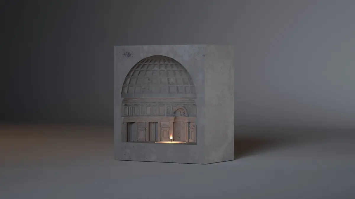 this is a model of a warmer holder shaped like the pantheon .
