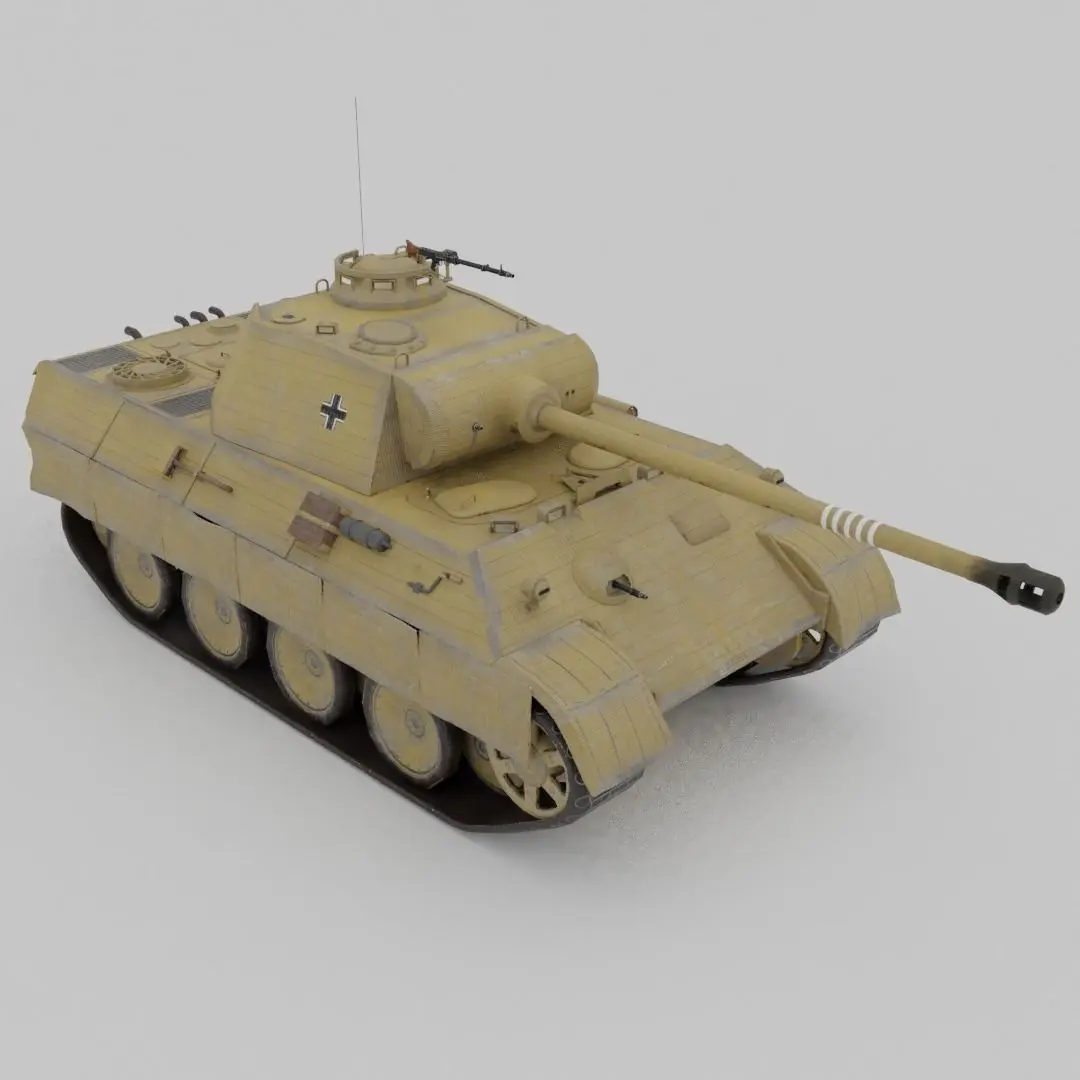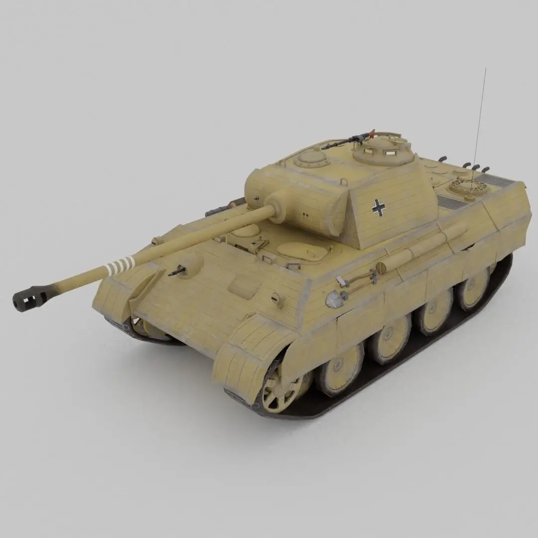 Description:The Panther is a German medium tank deployed during World War II on the Eastern and Western Fronts in Europe from mid-1943 to the war's end in 1945. It had the ordnance inventory designation of Sd.Kfz. 171. It was designated as the Panzerkampfwagen V Panther until 27 February 1944, when Hitler ordered that the Roman numeral V be deleted. Contemporary English language reports sometimes refer to it as the Mark V.