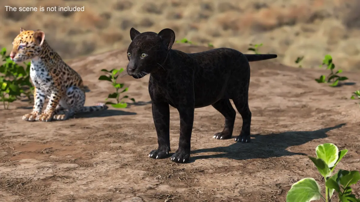 Panther Cub Playing Animated Rigged is a three-dimensional model of cute panther baby, that is a little baby black panther (cub or child), that is a specimen of cute offspring of melanistic big cats (leopards and jaguars).
