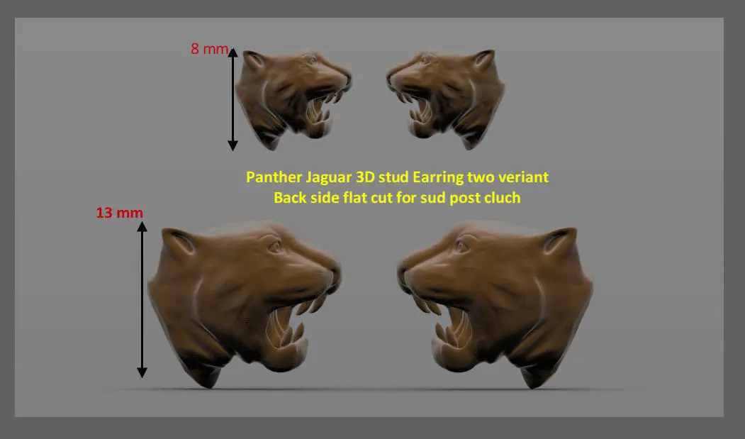 Angry Panther Head Earring two version Uses:- stud earring, Pendant, Charm, Brooch etc.