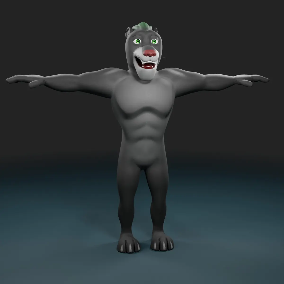 Humanized Pantera character, ready to be animated, and optimized. cartoon style. Can be used without cloths.