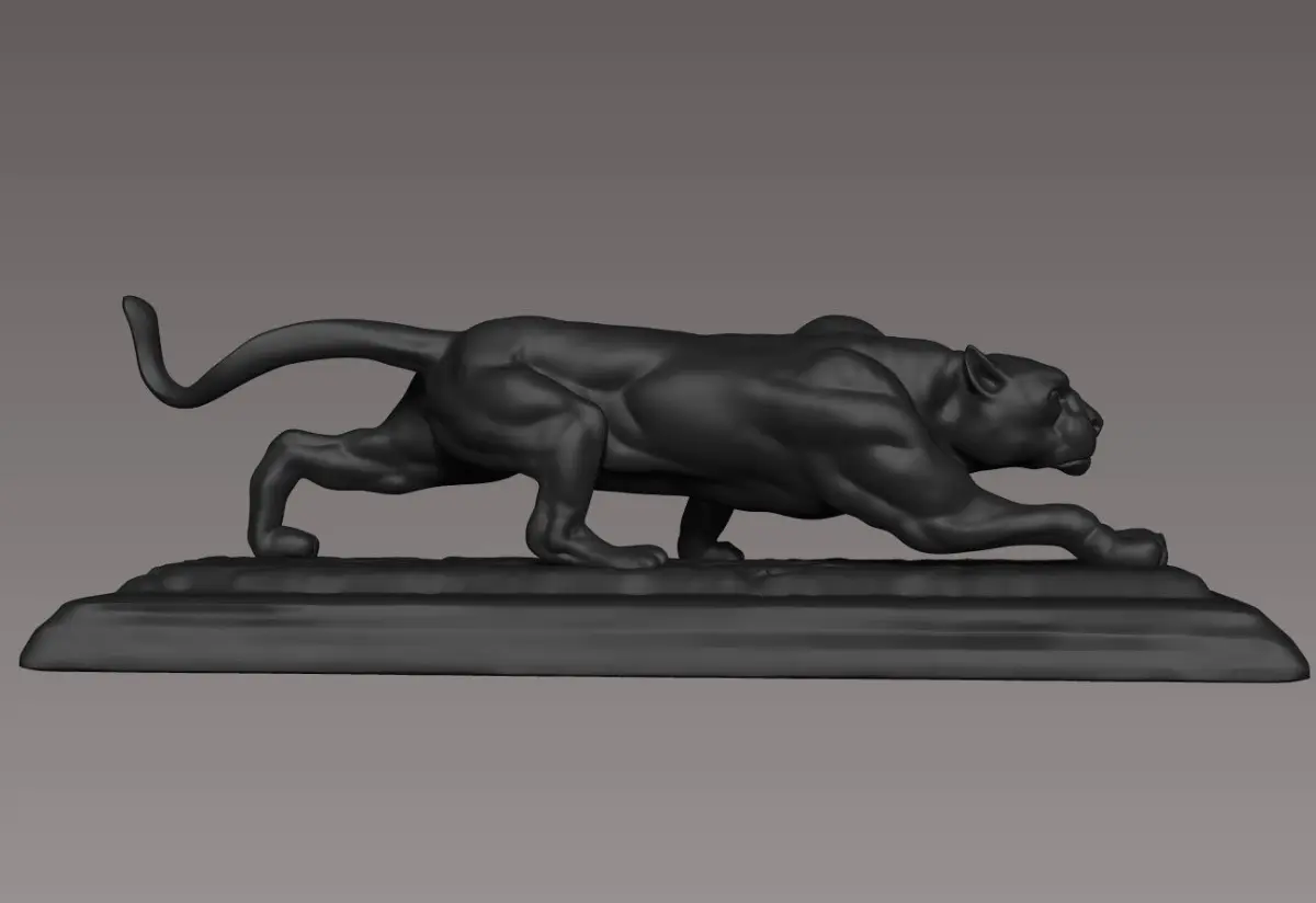 A beautifully sculpted bronze sculpture of a panther or leopard.